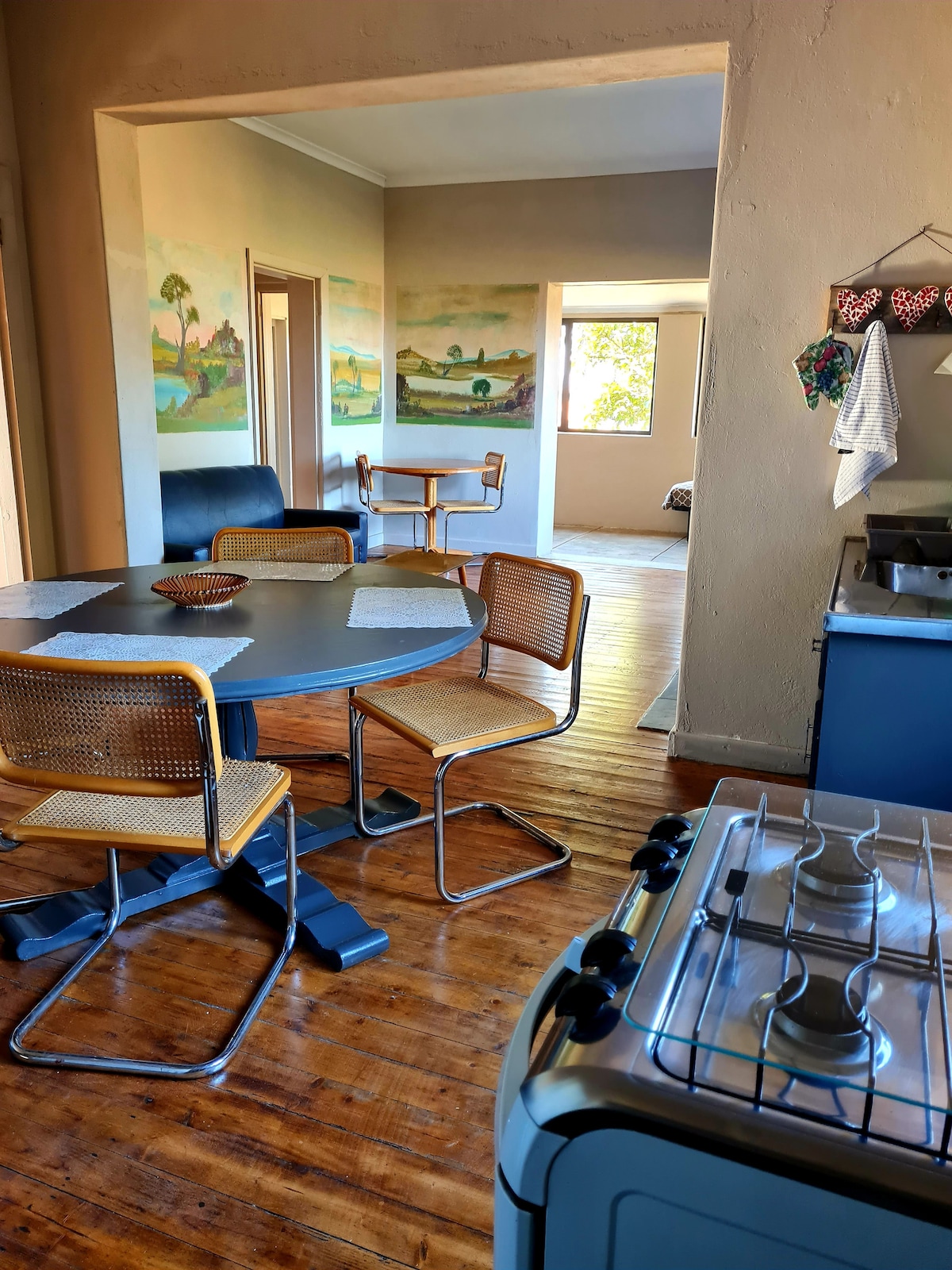 Stedet mitt ligger i nærheten av de fantastiske, hvite strendene i De Hoop naturreservat, reisendes hotspot Malagas med broen, bush pub og båthus-restauranten. Det er det perfekte stedet å bo i en uke og nyte alt området Swellendam og Bredasdorp har å tilby. Du kommer til å elske Die Blouhuis på grunn av det unike ved å bo i et gammelt gårdshus. Det er avsidesliggende og derfor veldig fredelig, privat og trygt – perfekt tilfluktssted for par, soloeventyrere og familier, spesielt barn.