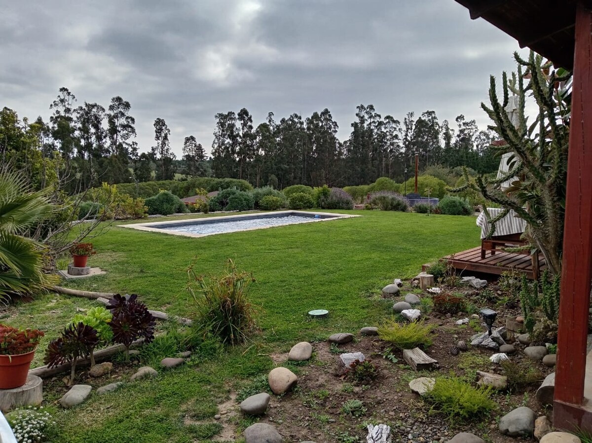 Slapp av som familie på dette fredelige, drømmende stedet 70 meter hytte, med 3 rom som ligger på vei til saltleilighetene, i El Yali Wetland (Ramsar-området) 25 minutter sør for Las Rocas de Santo Domingo-stranden. 20 minutter fra Tricao Park. Ligger nesten ved foten av en lagune (den har solvann om vinteren) et landsted med tilgang til Playa Las Salinas (15 minutter med bil). Komfortabel og romslig hytte, med alt du trenger for å slappe av, koble fra støy og hvile.