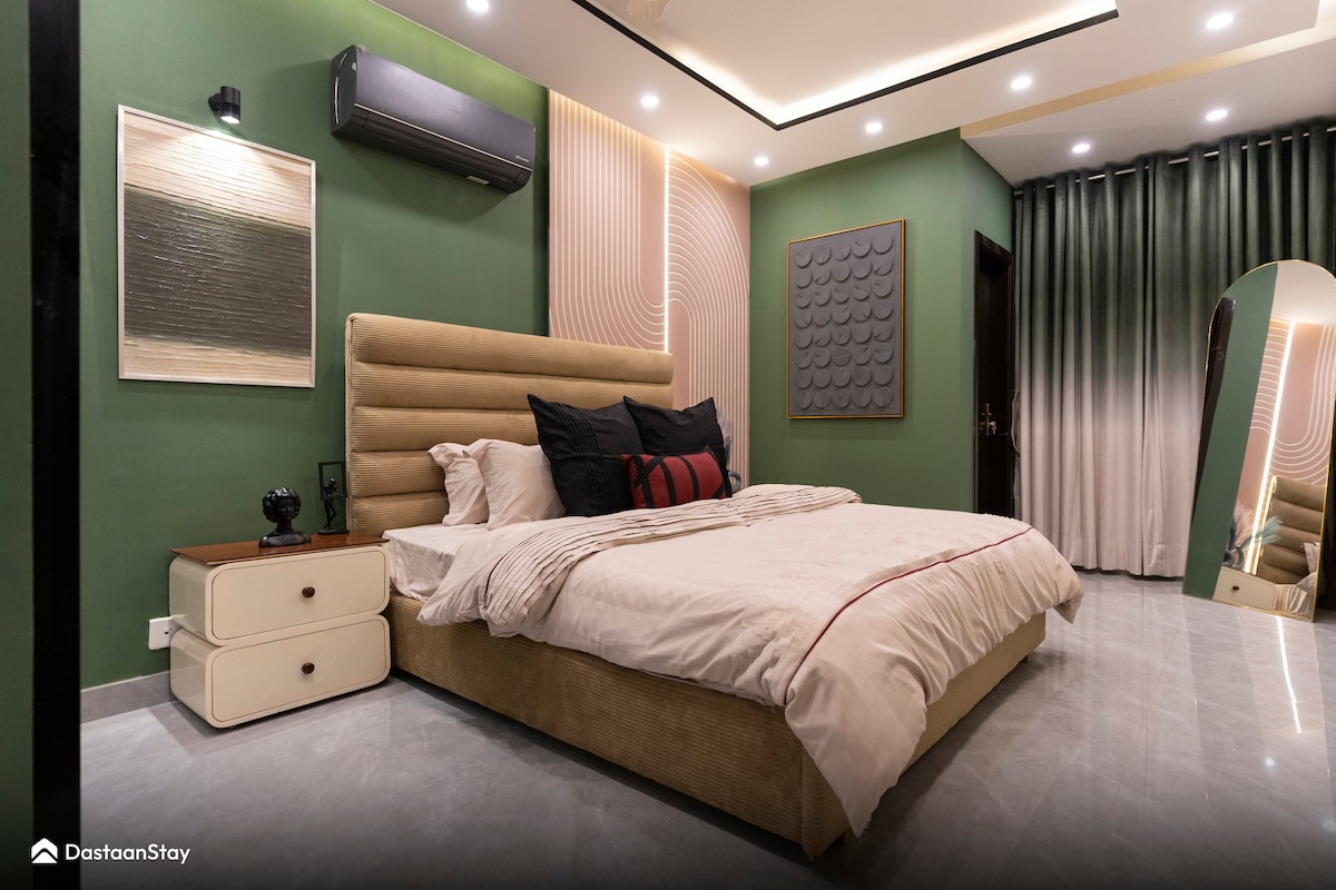 ✔ Førsteklasses beliggenhet i DHA Phase 5, minutter fra Raya, Dolmen og Packages Mall. ✔ døgnåpen resepsjon, strømbakup, sikkerhet og overvåkingskameraer ✔ Sikker innendørs parkering inkludert. ✔ Kaféer, restauranter og dagligvarebutikker rett utenfor ✔ Sentral klimaanlegg/oppvarming, trådløst nettverk med høy hastighet og en 65 tommers 4K-TV. ✔ Fullt utstyrt kjøkken og vaskemaskin/tørketrommel på stedet. ✔ Perfekt for turister, profesjonelle og små familier. – Ingen fester, alkohol, narkotika eller ugifte par. – Ingen bestillinger behandlet samme dag etter kl. 22.00 (i henhold til Penta SOP-er).
