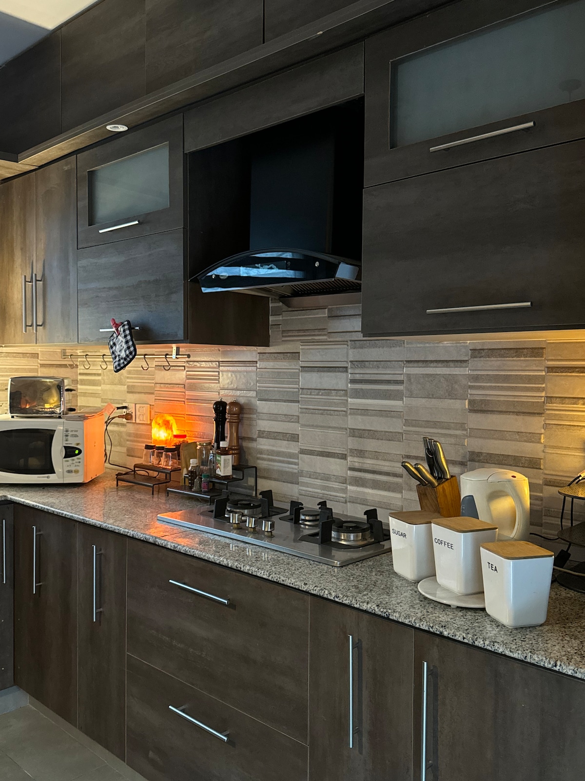 Velkommen til Twilight – en unik leilighet med månetema i DHA Phase 6 🌙 • Ett soverom med koselig belysning og moderne design. • Stilig salong med kunstnerisk innredning og 50" smart LED-TV. • fullt utstyrt kjøkken med komfyr, mikrobølgeovn og vannkoker • Raskt trådløst nettverk og sømløs innsjekking uten vert. 📍 Førsteklasses beliggenhet i nærheten av Raya Commercial, Dolmen Mall, Ring Road og mange kafeer. Den perfekte blandingen av komfort og stil. Det er det beste alternativet enten du reiser for forretninger eller fritid.
