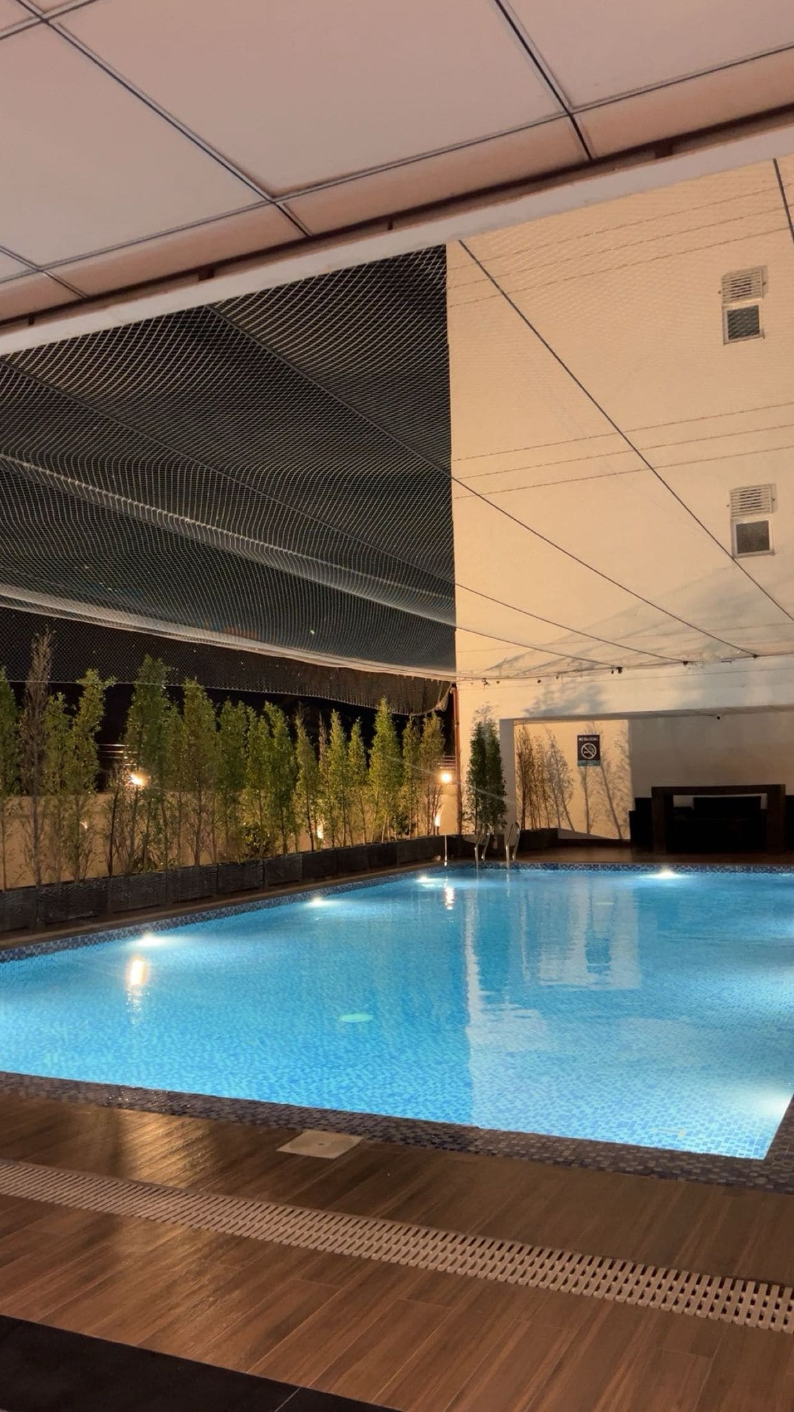 Gå inn i en dristig, neonbelyst stue med ett soverom, designet for rene vibber. Nyt det glødende stjerneklarhetaket, den stemningsfulle belysningen og den elegante, moderne innredningen som får hvert øyeblikk til å føles eksklusivt. Perfekt for par, alenereisende og skapere som ønsker stil og atmosfære. Tilgang til basseng, treningssenter og kino er inkludert i oppholdet ditt.