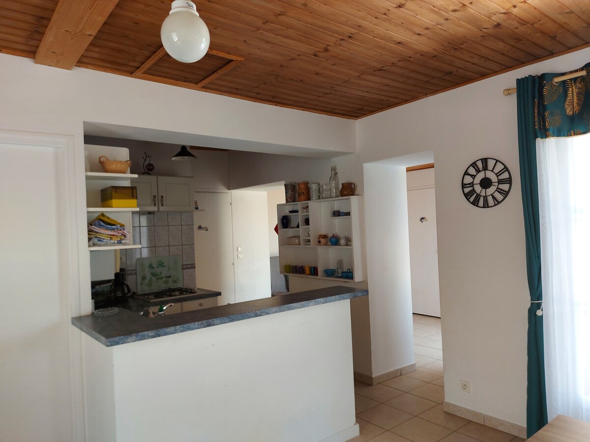 Uavhengig bolig ved siden av huset vårt med egen inngang. Privilegert beliggenhet 100 m fra en vakker strand i La Faute sur Mer. 2-roms leilighet på 22 m2 med kjøkkenkrok, sofa og TV; 1 soverom med dobbeltseng 160 x 190, med mulighet for å skille sengene (på forespørsel); Bad med dusj, vask og toalett. Terrasse med bord og hagestoler. Sengetøy og håndklær er inkludert. Wi-Fi inkludert. I juli og august, minimum 7 netter fra lørdag til lørdag.