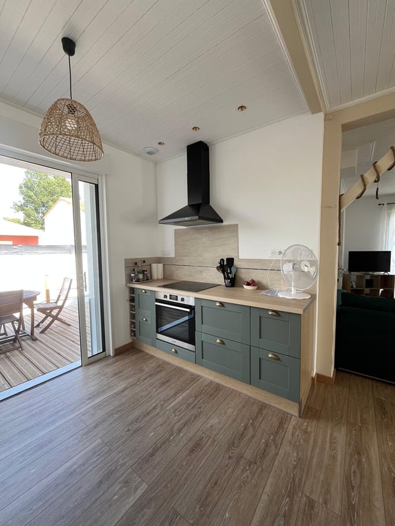 Velkommen til Julies hjem! En foryngende ferie ved sjøen, tilgjengelig med tog (én time fra Nantes) og uten behov for bil på stedet, for enda bedre avslapning … Vi ønsker deg velkommen til første etasje i en sjarmerende bolig fra 1600-tallet, som ligger ti minutters gange fra alt: havet, markeder, butikker, restauranter og fortauskafeer … Du er omgitt av stein, tre, naturmaterialer og nøye utvalgte farger, som skaper en hyggelig og innbydende innredning.