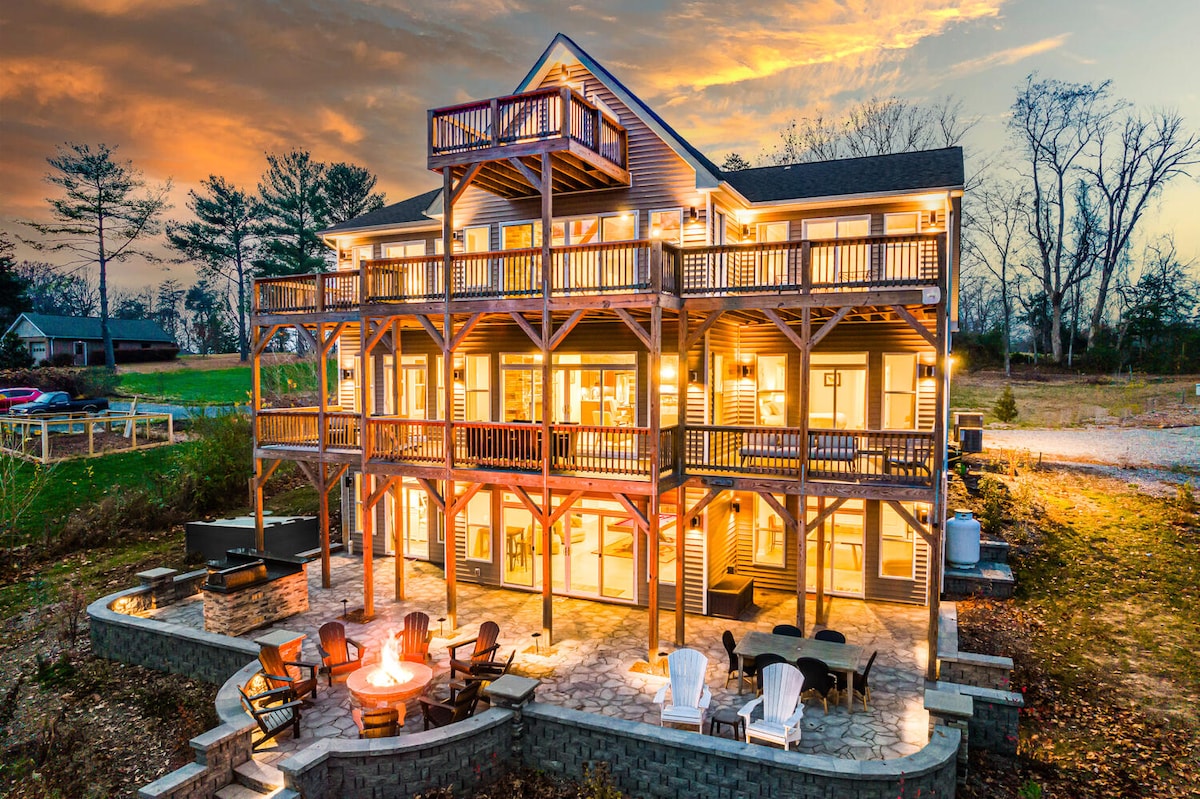 Oppdag den varme og private sjarmen til Lighthouse Cove, en tømmerhytte ved vannet med fantastisk utsikt over fyrtårnet på den varme siden av Lake Anna. Dette innbydende tilfluktsstedet er perfekt for familiesammenkomster eller fredelige ferier, og har et stort, velutstyrt kjøkken, romslige oppholdsrom og et spillrom i kjelleren med fotball, airhockey, biljardbord og en retro arkademaskin. Svøm eller padle kajakk til sent på høsten, gled deg over filmkvelder og samles rundt det store ildstedet i stein under stjernene.
