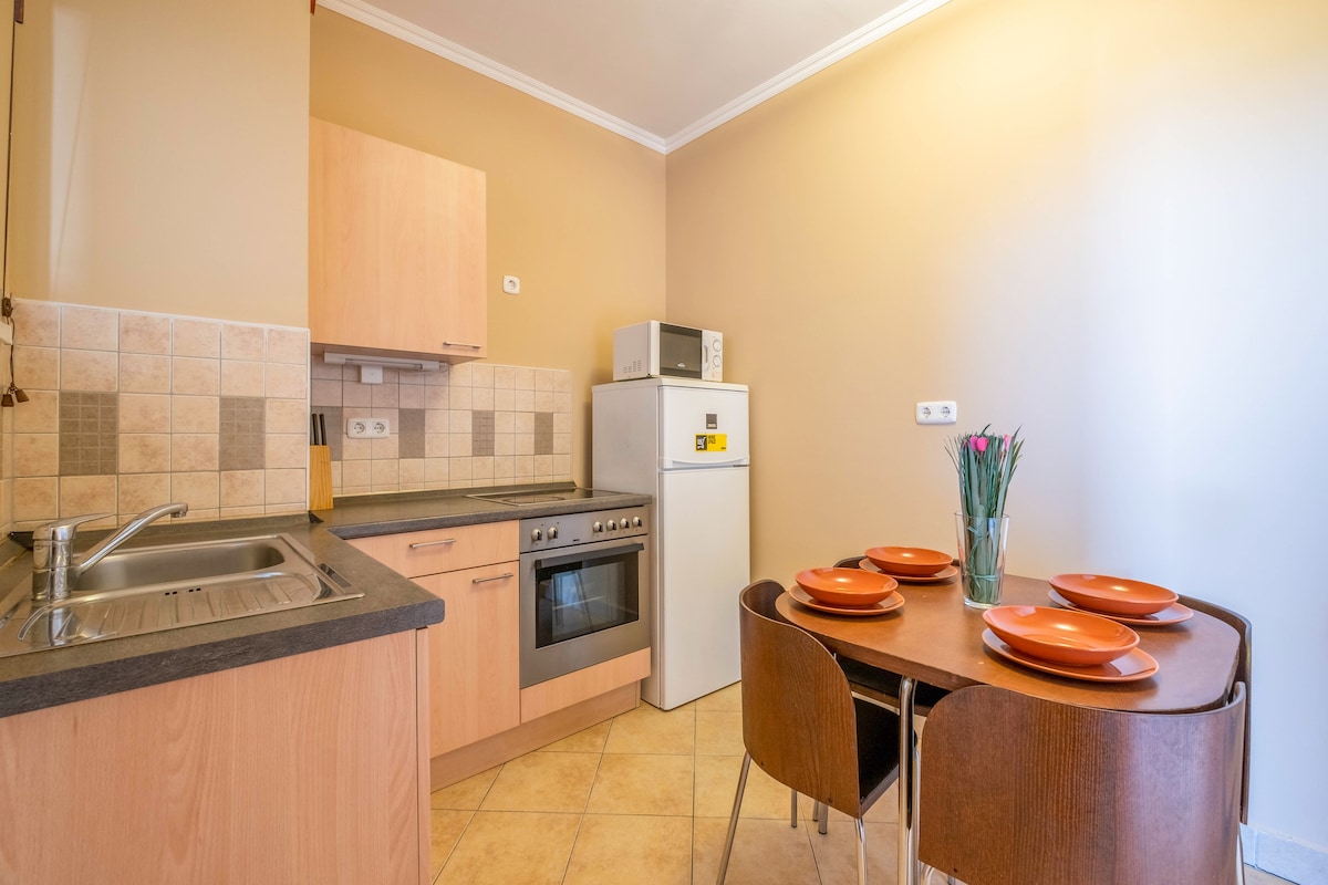 Hvis du vil ha følelsen av at du er hjemme, til tross for at du er langt hjemmefra, er Prisca Home det beste valget. Det ligger rett ved siden av stranden, som er gratis. Gratis parkering, restaurant, treningsstudio og lekeplass på gårdsplassen. Leiligheten er fullt utstyrt med nye kjøkkenmøbler og maskiner. Begge rommene har balkong med insektnett, store vinduer med vinduslemmer og gardiner, og det er TV og trådløst nettverk i hvert rom.