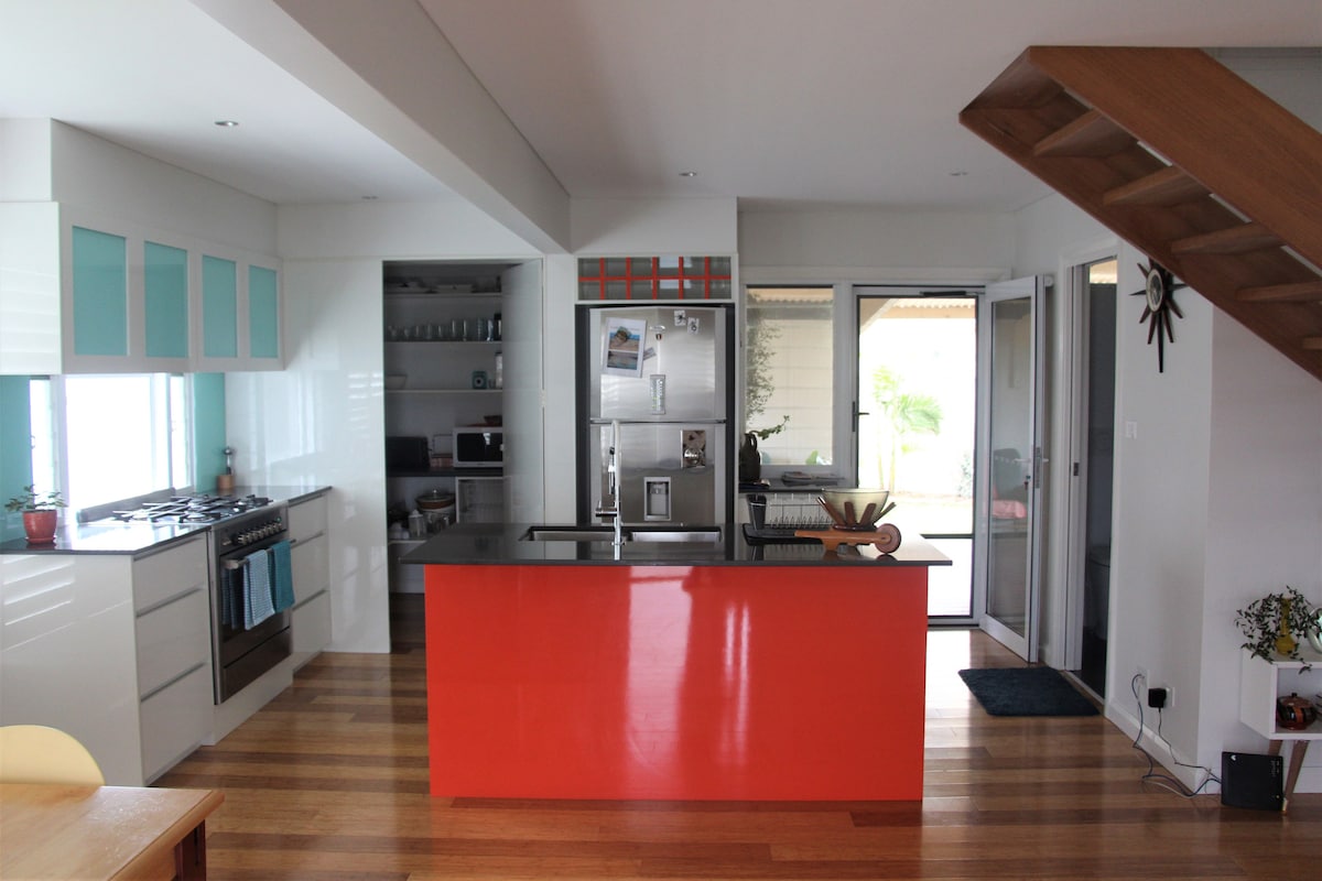 Funky renovert strandhus i 60-tallsstil Dette er et vakkert, lyst, funky og nyrenovert strandhus med masse innendørs og utendørs avslappende rom og grill. Vi har et moderne gourmetkjøkken og et luksuriøst bad. Interiøret er levende, men koselig og innbydende, med en 55" smart-TV og avslappende sofa. Huset ligger en kort spasertur fra stranden (80 m) og innsjøen (250 m), og bare 15 minutters kjøring til sentrum av Port Macquarie. Huset er ikke egnet for små barn på grunn av trappedesign.