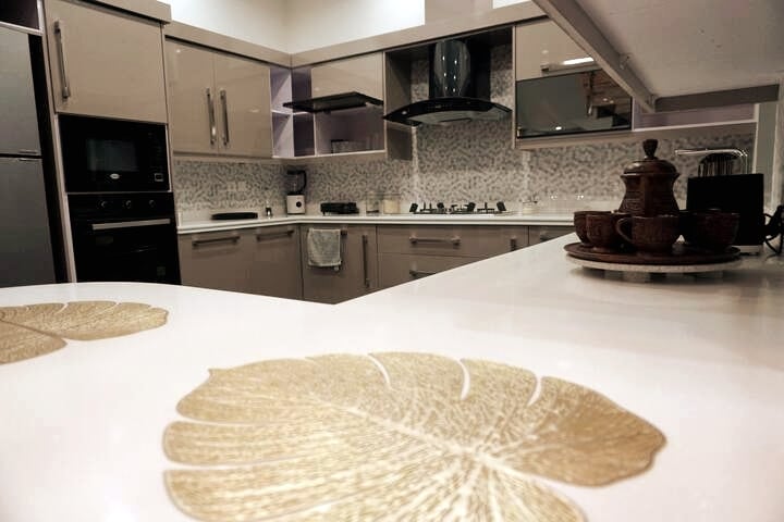 Velkommen til Pearline Residences, et moderne hus med to soverom og kjøkken i DHA Rehbar i Lahore. Nyt full komfort med klimaanlegg, varmeovn, geyser, trådløst nettverk med høy hastighet, 55-tommers TV (Netflix og YouTube) og et fullt utstyrt kjøkken. Inkluderer automatisk vaskemaskin, kjøleskap, rene håndklær, toalettartikler og gratis rengjøring. Perfekt for familier, par eller forretningsreisende som ønsker et koselig, privat og fredelig opphold.