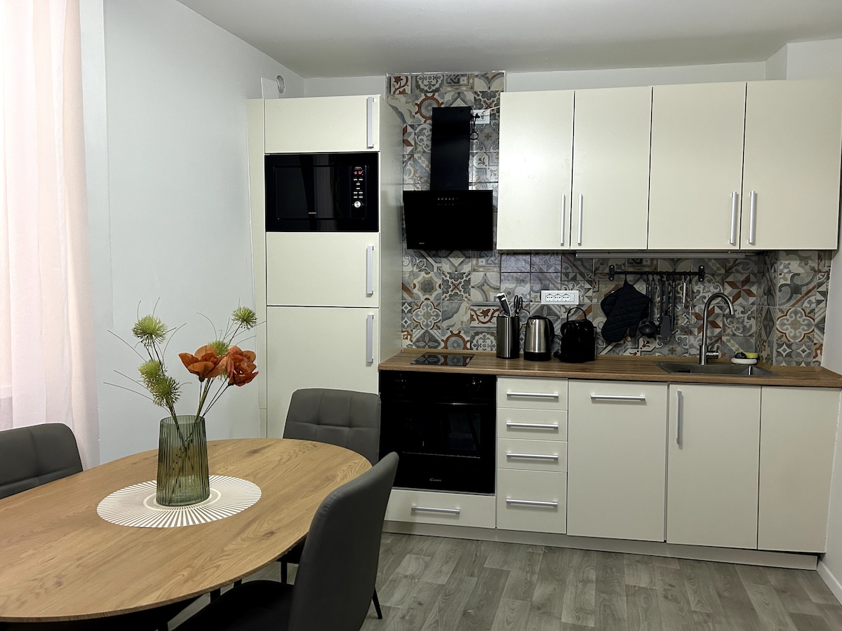 Denne koselige studioleiligheten, tilgjengelig i Smokey Nordic- eller Rusty Green-design, er gjennomtenkt utstyrt med alle nødvendigheter. Den har en komfortabel dobbeltseng, en flatskjerm-TV og et fullt utstyrt kjøkken med mikrobølgeovn, kaffetrakter, glass-keramisk komfyr, oppvaskmaskin og et komplett kjøkkenutstyr. Det separate badet har dusj, håndklær, hårføner og toalettartikler med bedriftens logo for å dekke daglige behov. Gardiner og et intercom-system sikrer privatliv.