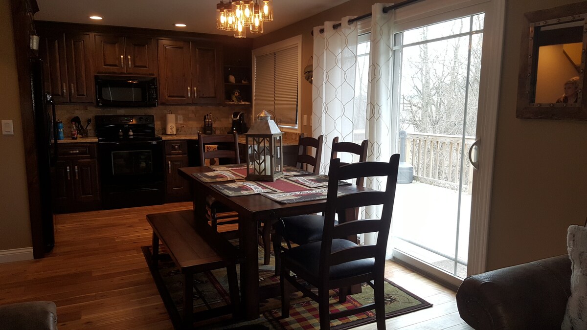 Velkommen til Pine Ridge – en fredelig, moderne feriebolig med to soverom og 2,5 bad i Galena Territory. Med to king-suiter, en koselig stue, utsikt over skogen og et privat boblebad, er det perfekt for par, venner eller en jobbferie. Slapp av på verandaen, slapp av ved peisen, eller utforsk stier, butikker og GTA-fasiliteter i nærheten. Bare fem minutter til Owners Club og ti minutter til Galena sentrum.