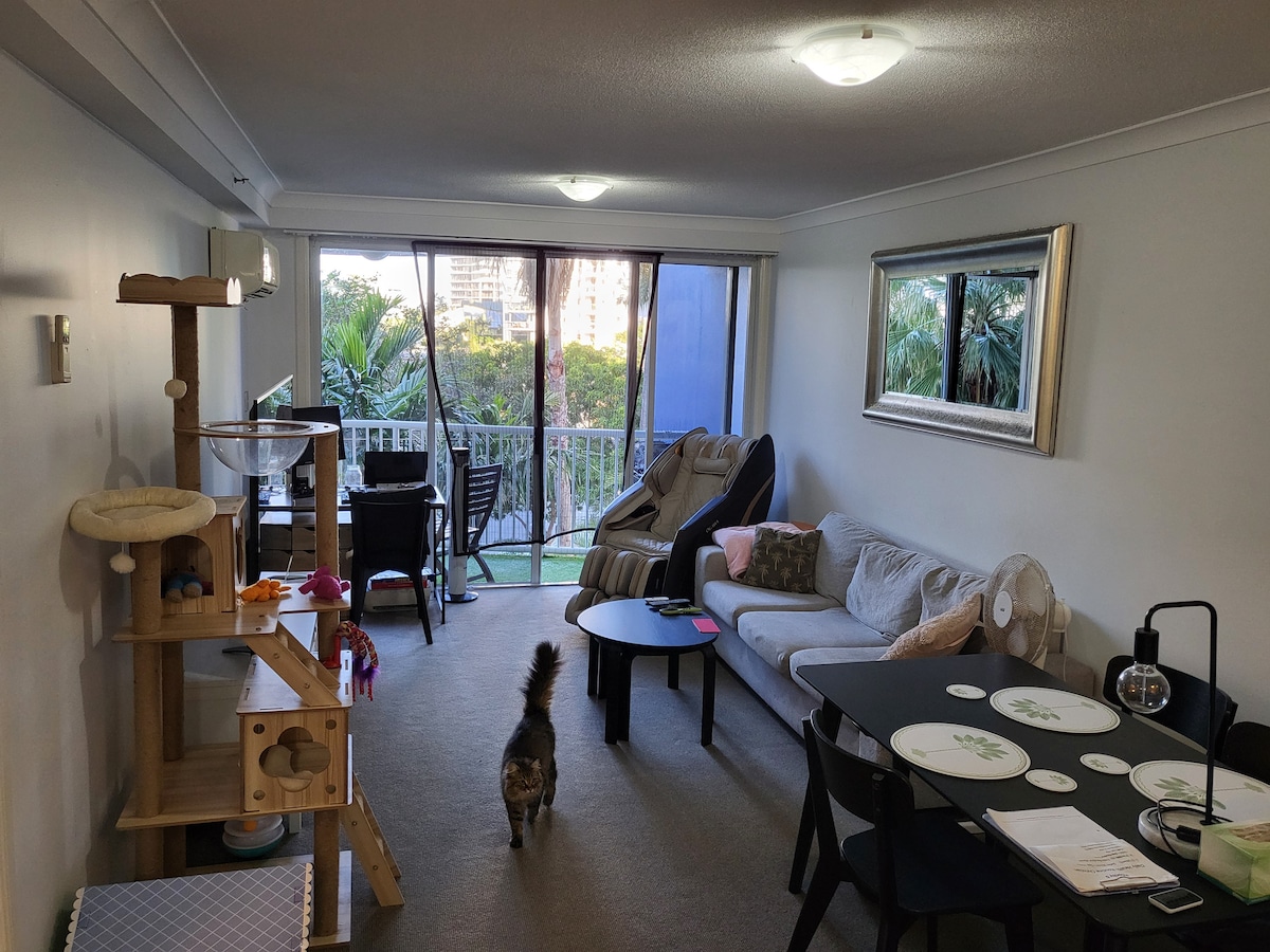 En balinesisk inspirert innredet leilighet (ligner en hotellsuite i funksjonalitet) nær stranden og Nobby Beach-landsbyen. Privat basseng for å kjøle seg ned, og nydelig terrasse rundt for å nyte solen og slappe av. Spaser 50 meter til stranden eller 350 meter til de trendy Nobby Beach-restaurantene og -kaféene. Nær tilgang til kollektivtransport og temaparker. Gjestene får tilgang til sin private leilighet via en privat dør utenfor bassengområdet. Leiligheten er ikke egnet for spedbarn eller barn.