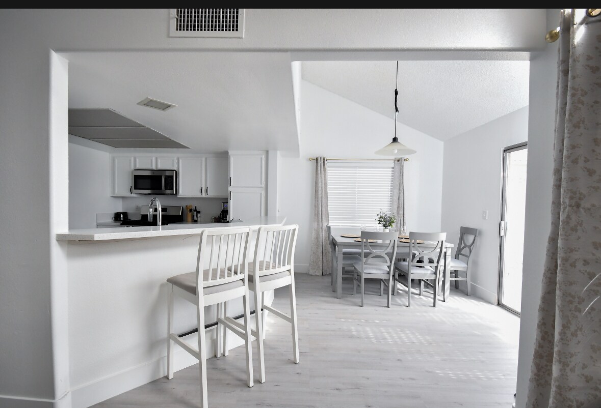 Bienvenido a esta hermosa suite totalmente renovada en North Las Vegas. El espacio ofrece un diseño moderno, tonos blancos elegantes y detalles de lujo que crean un ambiente cómodo y relajante. Perfecta para parejas, viajeros solitarios o viajes de trabajo, esta suite cuenta con un dormitorio acogedor, un baño nuevo con acabados en mármol. Ubicada en una zona tranquila y con fácil acceso al Strip, Downtown Las Vegas, y tiendas principales, este alojamiento combina comodidad, privacidad y estilo.