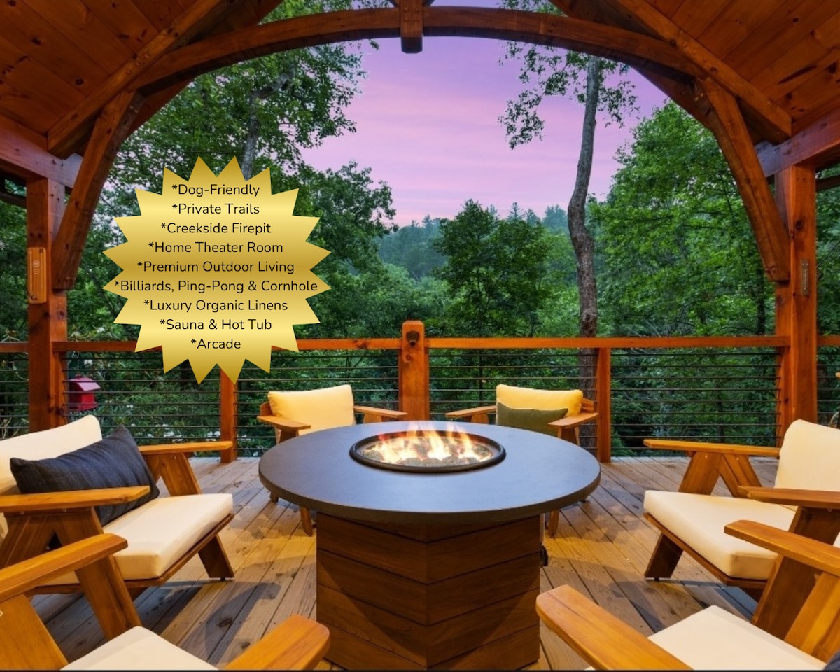 Luxury Riverfront Cabin HotTub~Sauna~Firepit~Games