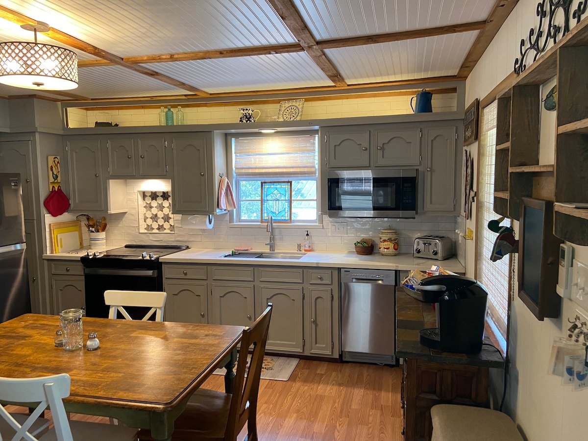 Ta med familien din til The Wildflower Ranch for en minneverdig opplevelse! Hver tomme av denne 3400 kvm tømmerhytta i feriestedstil er nydelig og perfekt for ferien din. Plass til store grupper på opptil 20 personer, med en romslig og åpen stue. Stuen flyter perfekt over i den bakre verandaen, hvor det er en gassgrill og et ildsted som bare venter på s'mores og historier. Ikke bare bestill overnatting, kom for en unik opplevelse! Stort boblebad og generator!