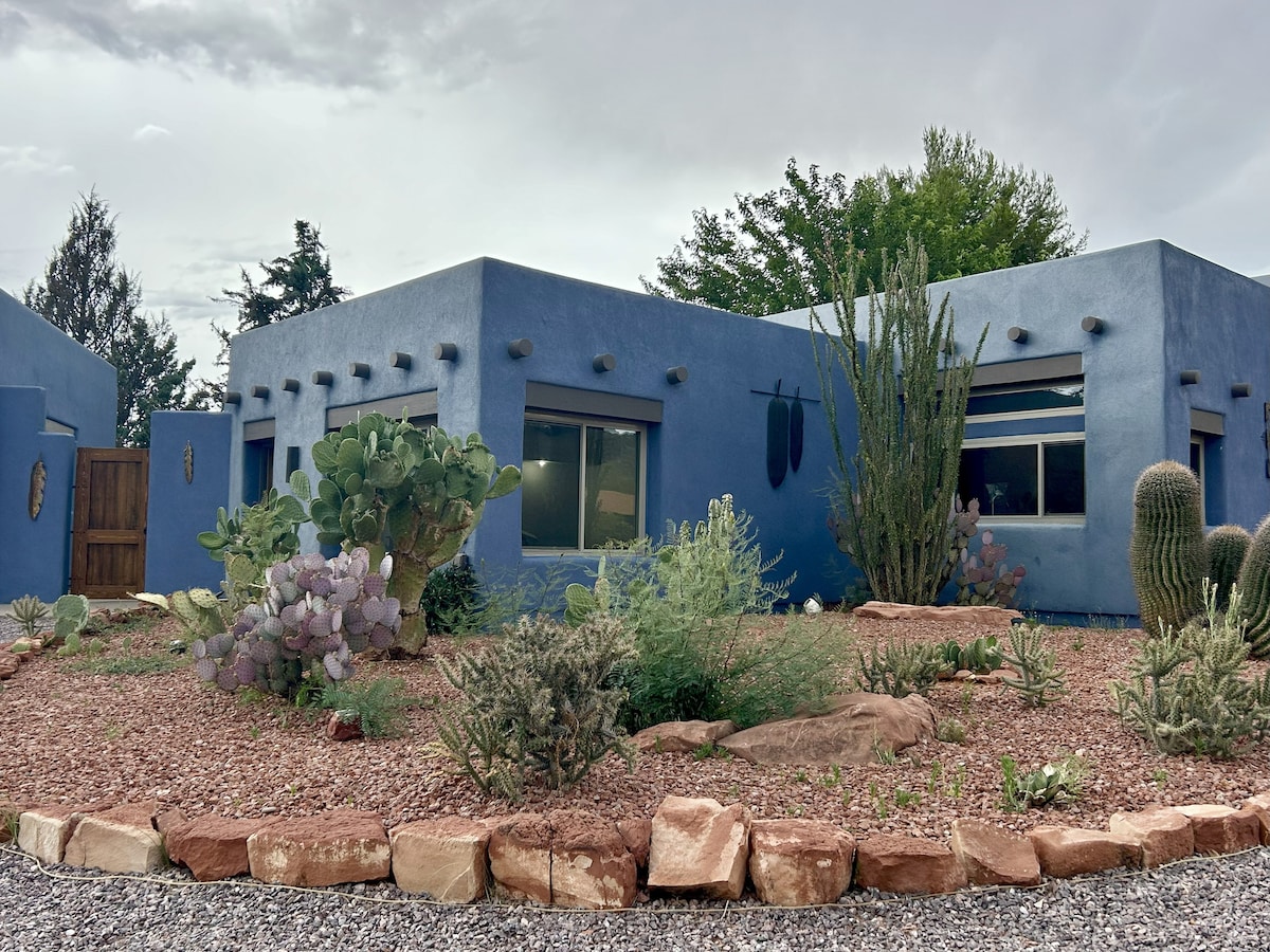 Casa Galeria er en fryd med fantastisk utsikt inn og ut med alle hjemmets bekvemmeligheter! Glassvegger gir panoramautsikt over Bear Mt og feiende skogsområder utenfor. Nyt den mørke nattehimmelen fra boblebadet omgitt av naturen i dette eklektiske ranchsamfunnet, langt fra kjas og mas, men fortsatt i nærheten av byen. En komfortabel og avslappende atmosfære for å slappe av eller som en hjemmebase for alt området har å tilby. Her er muligheten til å gjøre besøket ditt i Sedona enda mer magisk.