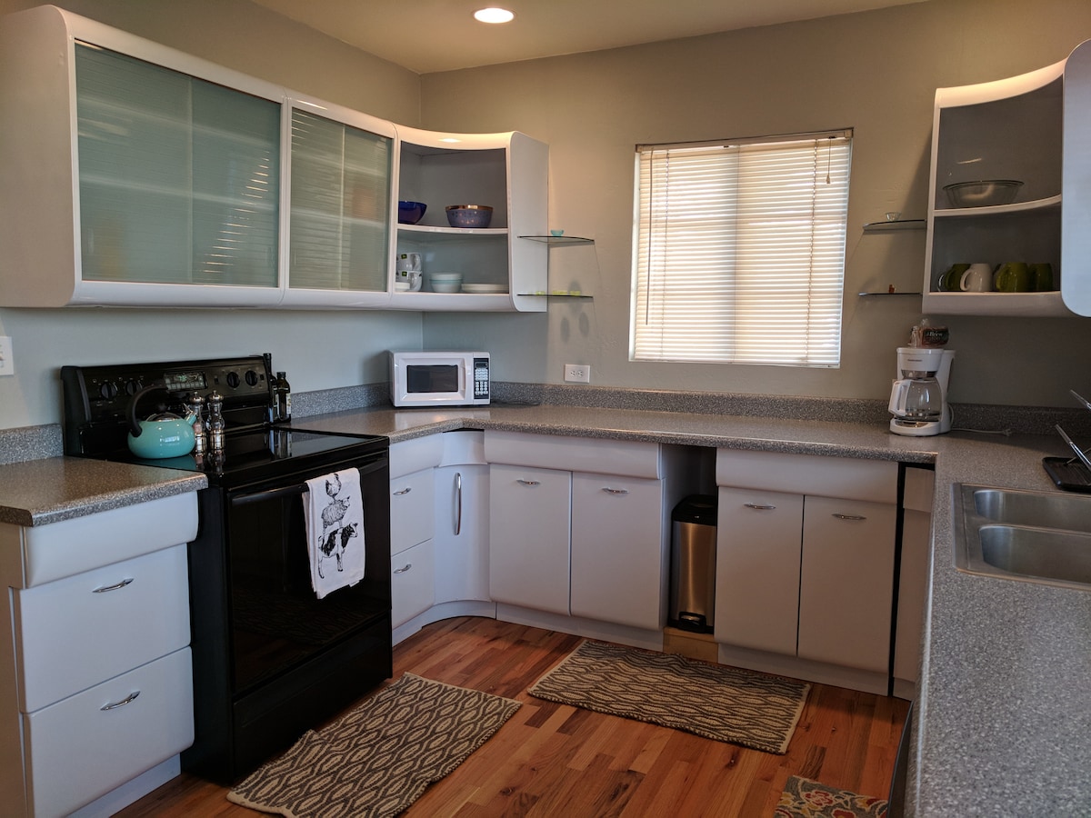 Denne «Cliff View Casita» er stedet hvor Zane Gray ville ha skrevet en av bøkene sine i det unike sørvesten. Vi har strålende utsikt over klippene med solnedganger og soloppganger, som vil ta pusten fra deg. Det er her Vincent Van Gogh kunne ha valgt å male stjernenatten og hveteåkeren i syv forskjellige nyanser hvis han hadde bodd i Amerika. Det er noe «vilt» med dette stedet – så mye skjønnhet og ro her! (Det er en annen enhet ovenpå, akkurat som et hotell.)