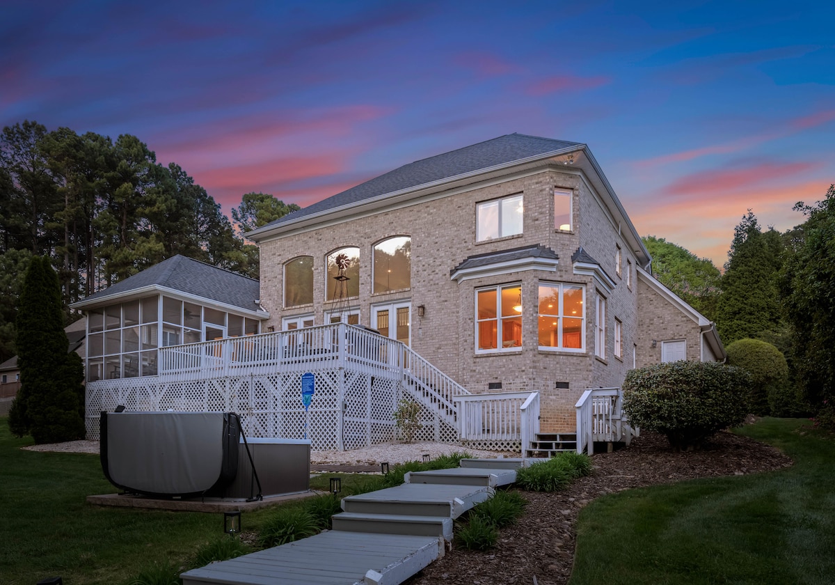 Velkommen til vårt avsidesliggende fristed ved bredden av Lake Norman! Dette stilige hjemmet ligger bortgjemt i rolig skog, og tilbyr den ultimate ferien for par som søker avslapning og eventyr, med et snev av familievennlig sjarm. Hjemmet vårt tilbyr uendelige muligheter for en parferie, og sikrer en uforglemmelig opplevelse ved innsjøen for alle, fra å kose seg inne på kingsize-sengen eller ved peisen, til å gli langs innsjøen på et padlebrett eller se på stjernene i nærheten av bålet.