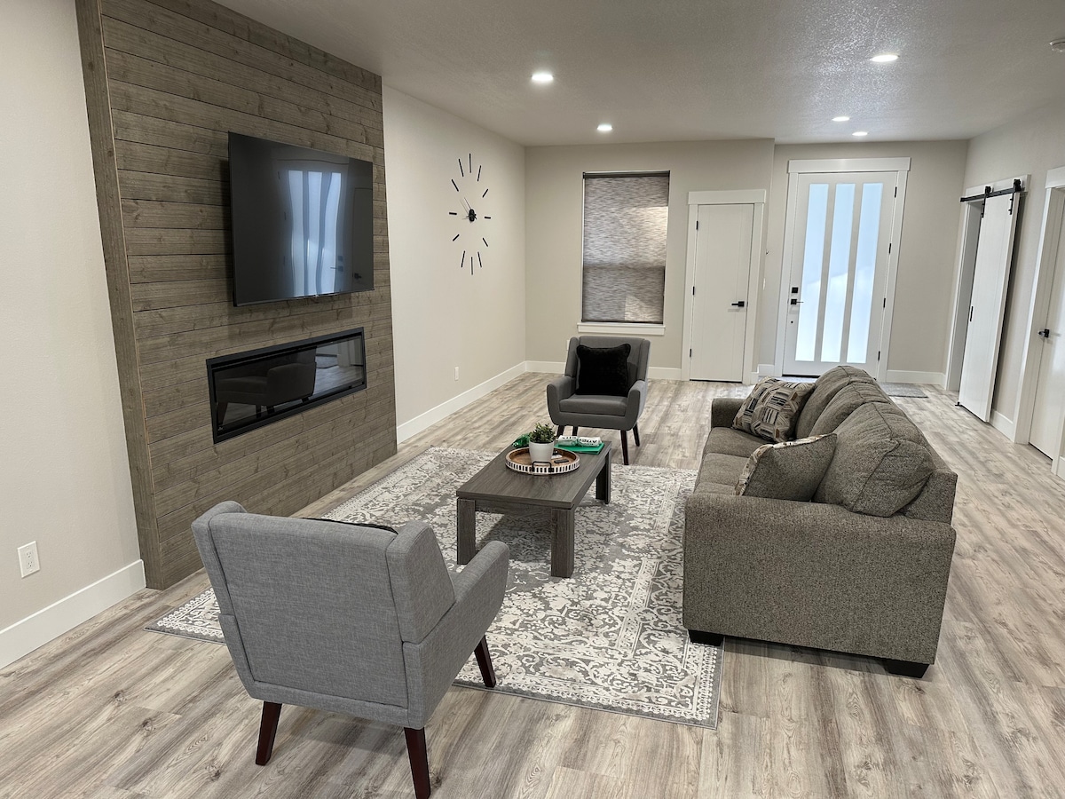 Jeg har et hus med tre soverom, to komplette bad, en stue, spiseplass og åpent kjøkken. Hovedsoverommet har en king size-seng, de to andre har queen size-senger. Jeg har også en luftmadrass hvis det er behov for ekstra soveplass. Alle soverommene har garderober og TV-er, og det er et skrivebord og en stol til et arbeidsområde i garasjen om nødvendig. Internett med høy hastighet og en fullstendig inngjerdet bakgård med et overbygd område, bord og stoler for avkobling eller underholdning.