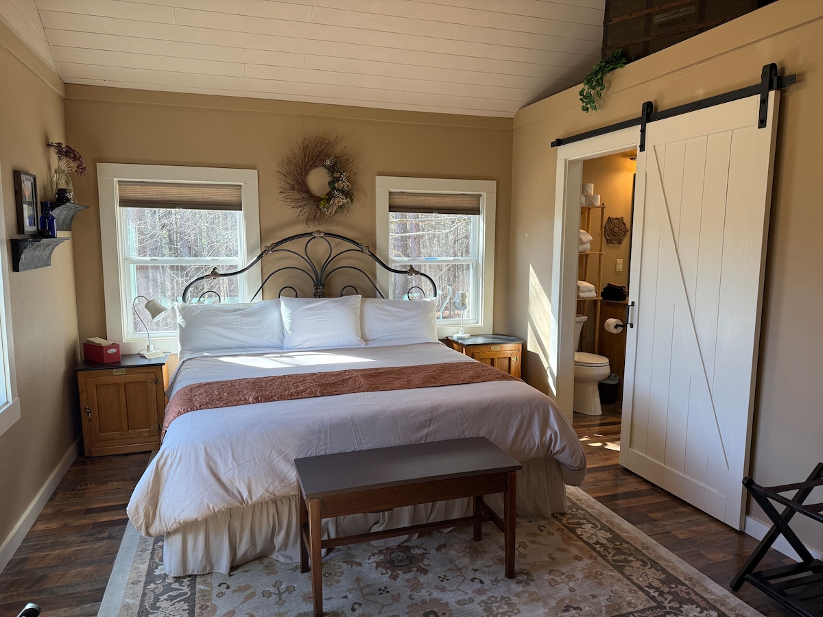 Privat hytte kun for voksne, for to personer, på den nydelige gården vår på 72 mål i skogen. Hytta vår har et fullt kjøkken og en kingsize-seng. Ta en tur gjennom skogen eller tilbring et rolig øyeblikk ved Clear Creek, eller bare slapp deg på den overbygde verandaen og nyt dyrelivet. Selv om gården ligger bortgjemt i skogen, er den sentraltliggende i forhold til alle fasilitetene – restauranter, shopping og underholdning med historiske Hot Springs sentrum og Oaklawn Casino & Resort ligger en kort naturskjønn kjøretur fra gården.