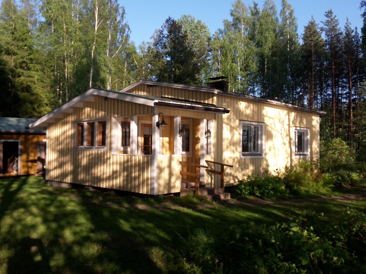 Hideaway cottage ligger rett ved den rene innsjøen Päijänne Ristinselkä. Hytta har en terrasse med vakker utsikt over innsjøen. Du kan slappe av i din egen badstue. Om vinteren kan du gå på ski rett fra døren hvis været tillater det, eller du kan stå på ski i bakkene i nærheten av Riihivuori. Du kan spille tennis på gummiasfaltbanen, leie elsykler, sup-brett, snøsko, kajakker, fiske eller gå turer mens du nyter den fantastiske naturen. Vi vertsparet og hunden vår Uhku bor i bakken bak hytta.