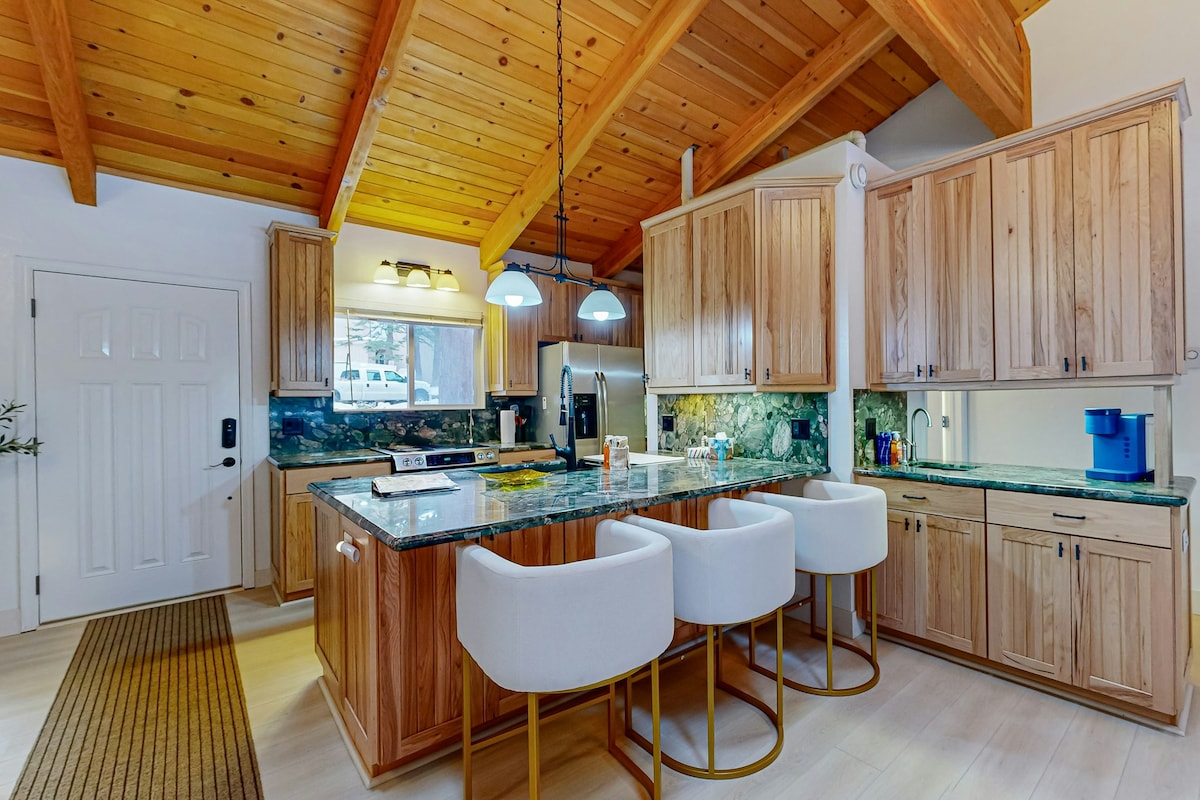 Opplev et liv i fritid i denne moderne fjellhytta med tre soverom og to bad. Denne vakkert møblerte ferieboligen ligger innenfor en kort spasertur fra stranden i Skylandia Park og en rask kjøretur fra bakkene i Palisades og Northstar. Når du ikke er ute på eventyr, kan du tilbringe kvalitetstid med dine nærmeste over et bad i boblebadet eller etterpå rundt peisen. Og la oss ikke glemme utsikten fra terrassen – den perfekte bakgrunnen for et postkort fra paradis!