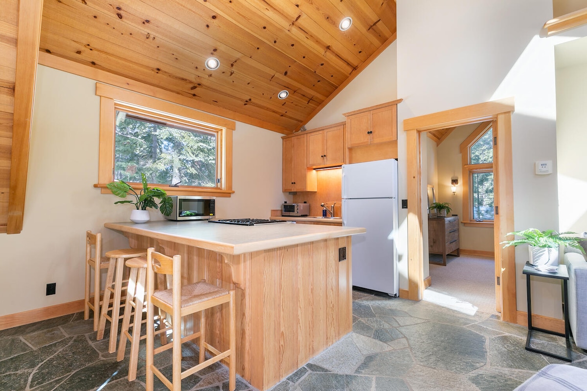 Et rolig fjelltilfluktssted designet for to. Nyt din egen frittstående, private suite. Inne kan du slappe av ved peisen eller i en queensize-seng, spise og tilberede måltidene dine i et fullt funksjonelt kjøkken, jobbe eksternt ved hjelp av høyhastighets internett eller se favorittfilmene dine på en smart-TV. Ute kan du nyte tilgang til turgåing, terrengsykling, langrenn og gå med snøsko rett utenfor døren. Alpint ski og Tahoe-strender ligger få minutter unna.