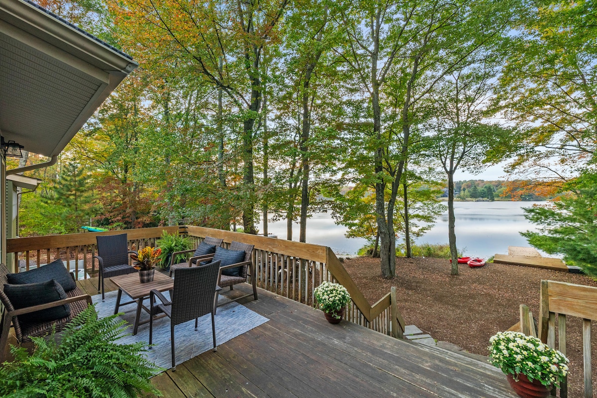 Fredelig eiendom ved sjøen på en privat 110 hektar stor innsjø i de vakre Pocono-fjellene! Nyt fisking og kajakkpadling fra den private bryggen, ta inn utsikten over innsjøen og dyrelivet, eller våg deg ut til Lake Wallenpaupack og andre lokale aktiviteter. Dette huset er familievennlig og har brettspill, biljardbord, kajakker, fiskestenger, grill, bålplass, strømmetjenester og alle fasilitetene du trenger til ferien. Mindre enn ti minutter til den historiske byen Hawley og Lake Wallenpaupack.