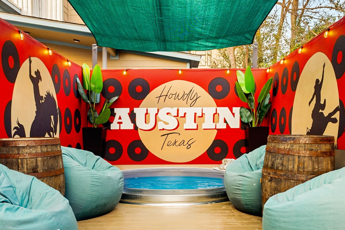 ✨ Austins ultimate utdrikningslag • Nyrenovert • Plass til 16+ • 10 min til DT 🏡 Moderne hjem med fem soverom og tre bad, designet for utdrikkingslag og gruppereiser 🛏 10 ekte senger 💦 Oppvarmet og avkjølt cowboybasseng 😎 Boblebad med plass til seks 🔥 Bålplass ⛳️ Puttinggrønn 🍔 Grill + spisestue 👾 Klassiske arkadespill ♠️ Offisielt pokerbord 🏓 Pingpong og 🎱 biljardbord 🕹 Nintendo Switch + Mario Kart og Smash Bros 🍿 Store TV-er for sport og filmer 🍽 Fullt utstyrt kjøkken 🚘 Ti minutter til sentrum. 🐶 Dyrevennlig