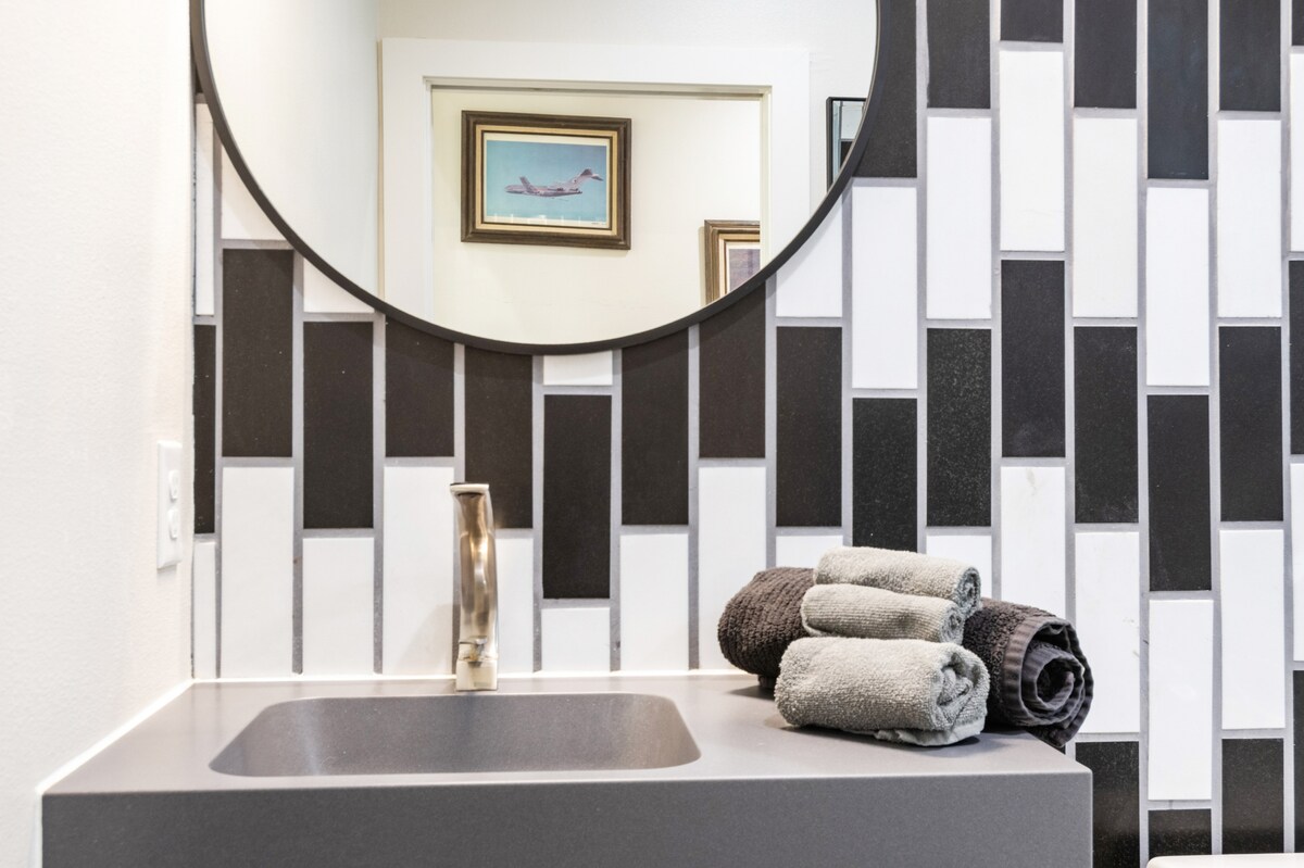 Slapp av i dette vakre, nybygde, arkitektdesignede stedet – komfortabelt og bygget for ungkarer eller familiegrupper som har det mest morsomme Austin-besøket som er tenkelig. Romslig, med helt privat uteplass, vil du ikke dra fra Austin eller dette huset. Nær gangavstand til mange kule restauranter, barer, et bakeri, kafeer, den beste tilgangen til innsjøen og stien i byen, nærmeste boligområde til 6th, sentrum, Rainey osv. Virkelig PERFEKT hus med den BESTE beliggenheten.