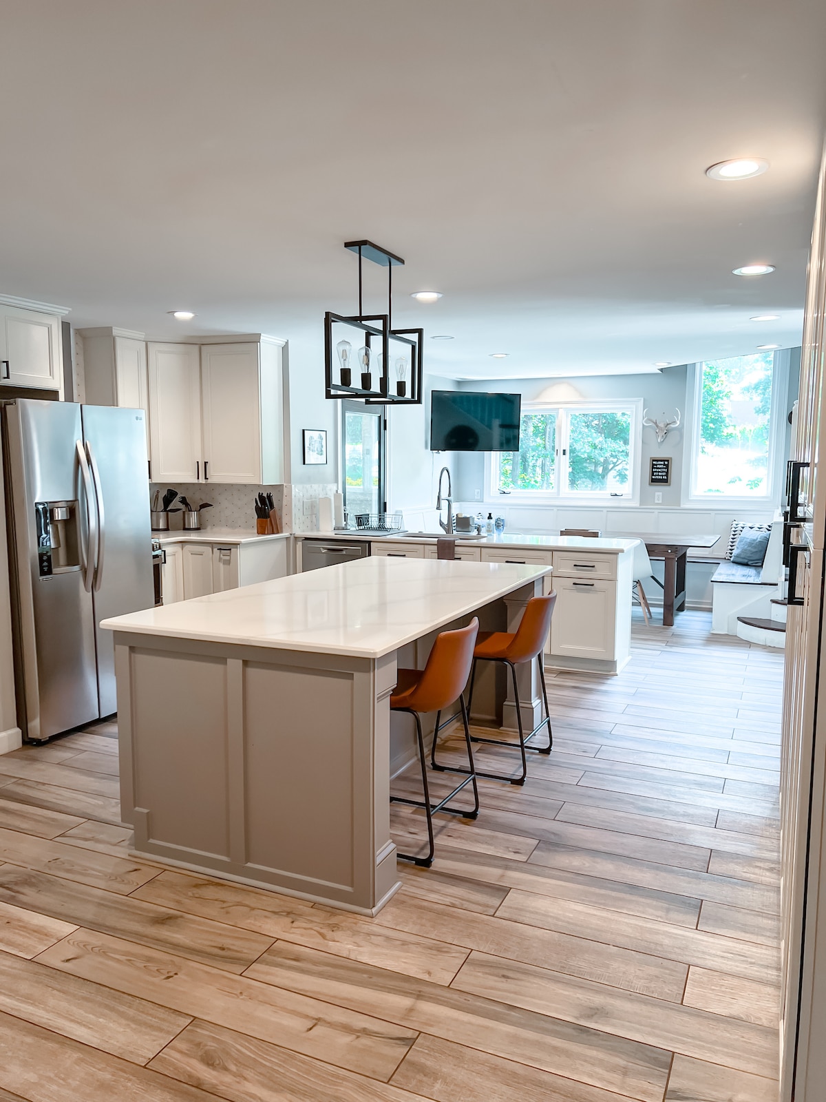 Opplev en drømmetur ved innsjøen! Denne vakre Airbnb-en tilbyr imponerende utsikt over innsjøen, et herlig boblebad og uendelig underholdning med et biljardbord og mer! Uforglemmelig avslapning og spenning venter deg her! Nyt romslige overnattingssteder i dette tilpassede hjemmet med to kingsize-senger, én queensize-seng, to store stuer/underholdningsrom og en vakker overdekket veranda som går inn i en overdimensjonert terrasse med rolig utsikt over innsjøen! Dette er et perfekt hjem for familie og venner å slappe av og koble av!