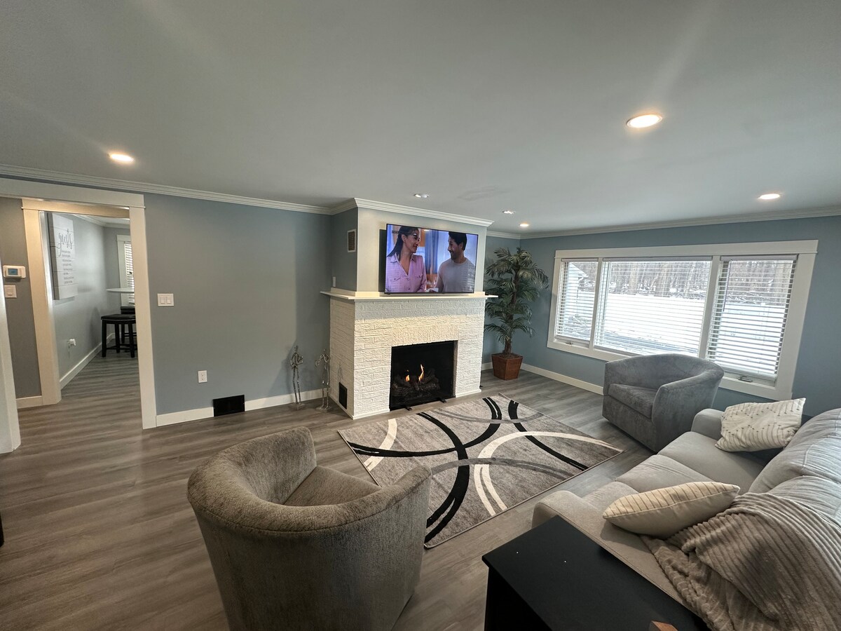 BELIGGENHET BELIGGENHET BELIGGENHET... Dette koselige hjemmet ligger i nærheten av alt. Beliggende bare 2,5 miles fra Chautauqua Lake, 10 miles fra The Chautauqua Institution, 19 miles fra ski, er dette det perfekte stedet. PLASS... Vaskerom i første etasje, fullt kjøkken, stor skjerm-TV med YouTube TV, gassgrill og mye mer. Alt du trenger for å føle deg som hjemme. MERK: DET ER PLASS TIL FIRE Å SOVE, MED TO QUEEN-SENGER OG EN STOR STANDARD (ikke uttrekkbar) SOFA Å SOVE PÅ. INGEN GARASJETILGANG.