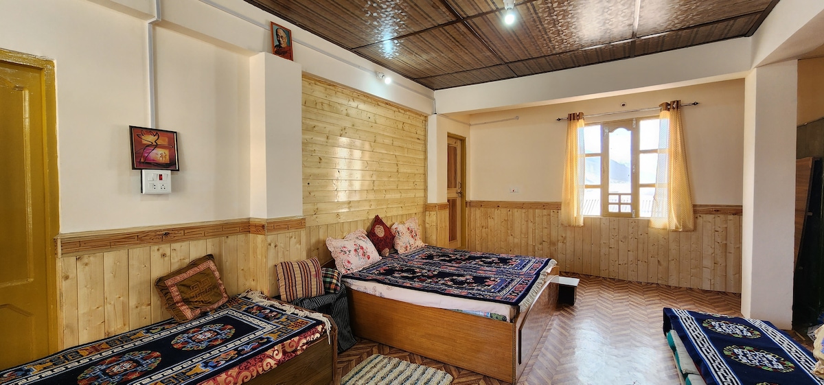 Hei, det beste med stedet mitt er at vi bor i en veldig liten og slutter landsby veldig langt fra bylivet. Alle kan føle seg veldig stille,ingen lyder av trafikk, ingen folkemengde,dette stedet er veldig bra for de menneskene, som er lei av bylivet. Vi kan tilby trådløst nettverk,parkering like i nærheten av hjemmeoppholdet mitt, bygningen min er 100% miljøvennlig jordbygning,vi prøver å bevare naturen og kulturen i spiti valley...vi belaster for dobbeltsengerom Rs.1200/ per dag,to tiders te er gratis, måltider må betale separat,