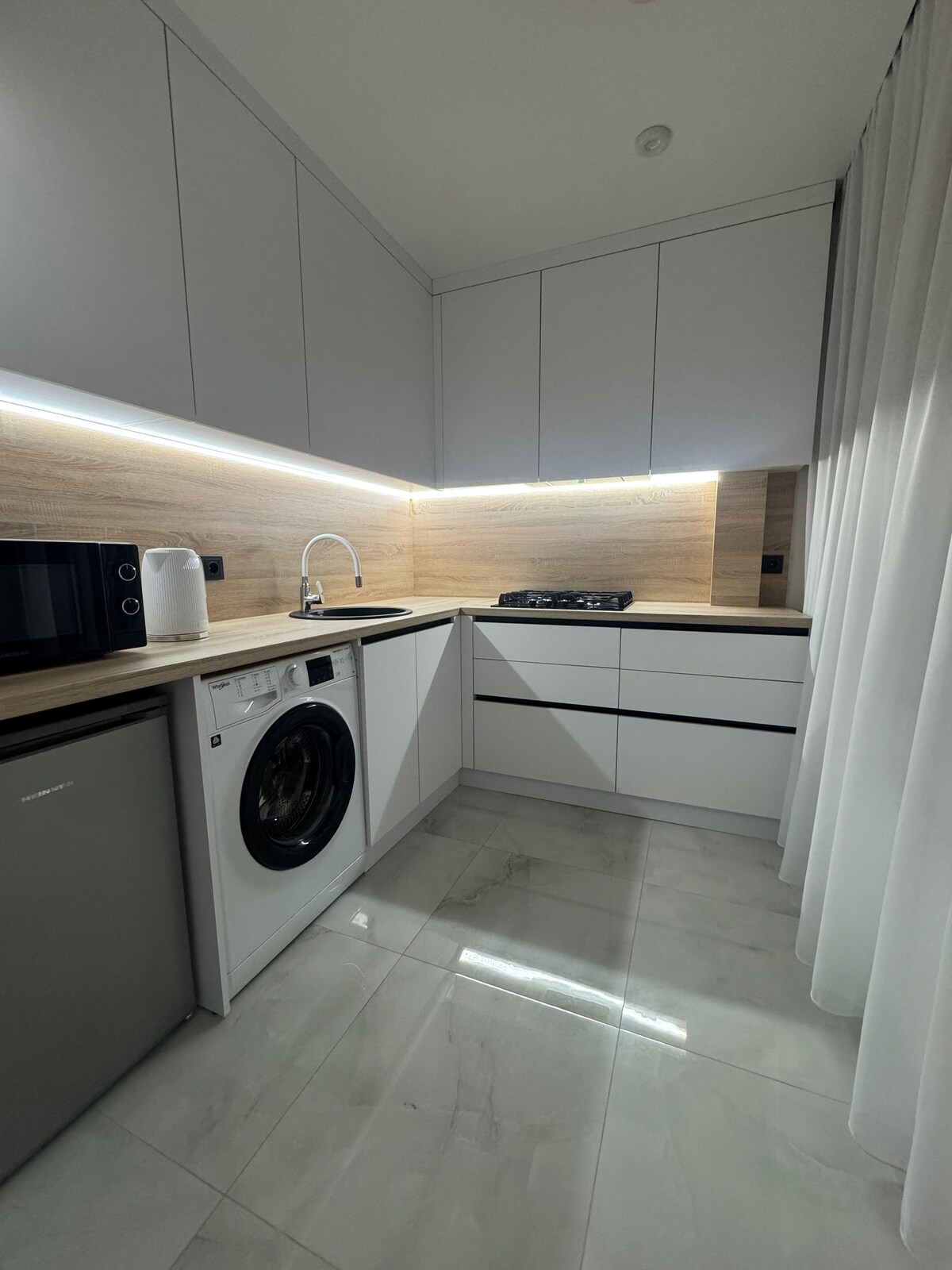 individuell design (benkeplate i granitt, marmor i arbeidsområdet, KIRSEBÆR i naturlig tre, bardisk), skjenk (naturlig tre), skinnhjørne (glidende som en dobbeltseng). Det oppvarmede gulvet er overalt! Apparatene er de mest moderne: et saibaysay-kjøleskap (filtrert vann, is), ovn(med pyrolysrengjøring), oppvaskmaskin, vaskemaskin osv. En fantastisk utsikt over Dniester-elven og åsene. Alt gjøres på høyeste klasse!