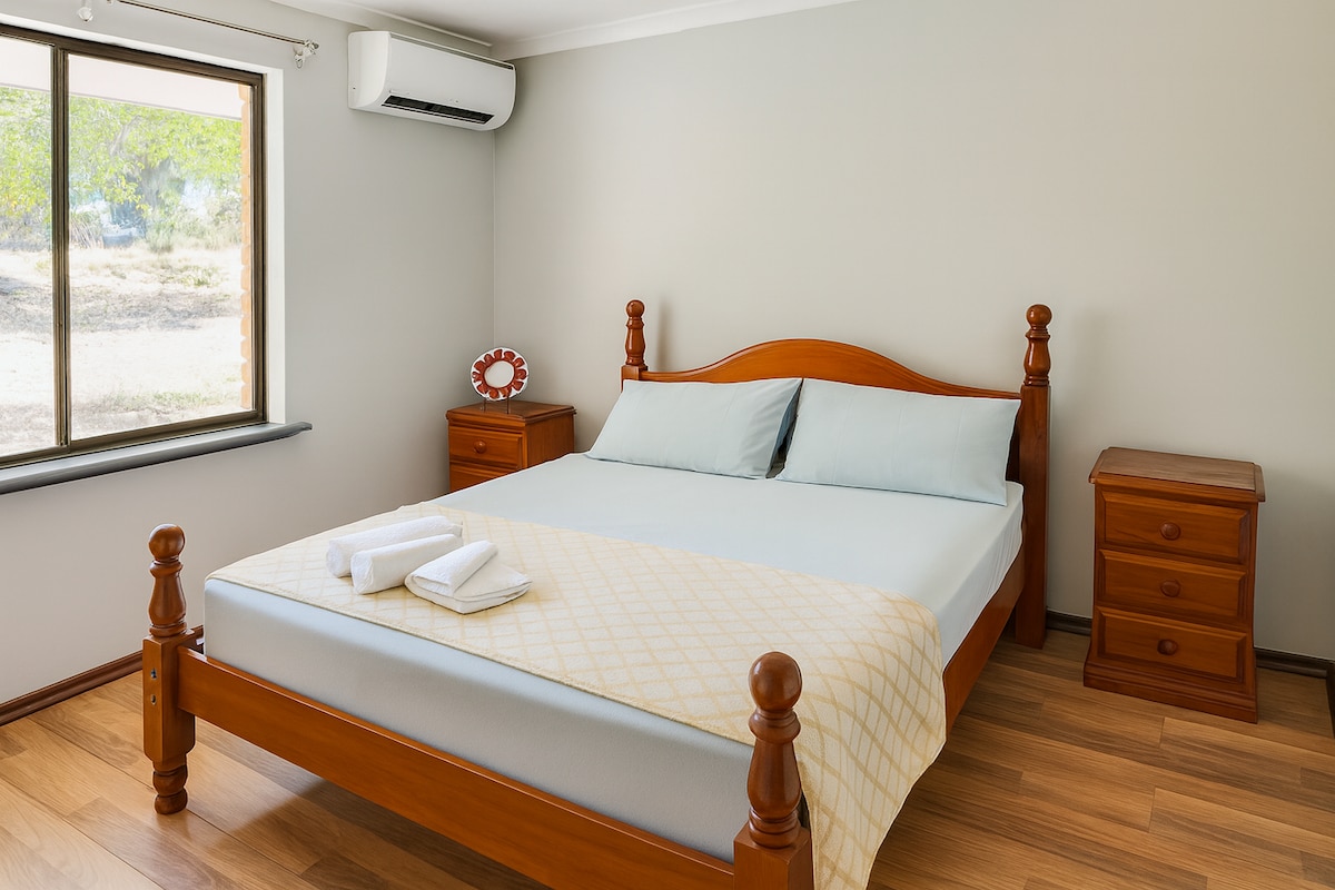 Fullt hus tilgjengelig 3 minutters gange til strand, park og butikker. 2 separate stuer slik at to familier kan bo sammen, men i separate områder, 1 ovenpå med utsikt og 1 første etasje. Kafé og Tavern 3 minutters gange med fantastiske solnedganger over havet. 4wd-områder ikke langt unna sammen med Yanchep nasjonalpark. Flott sted å bo hvis du skal på en funksjon på Yanchep Caves eller bare slappe av når alt er utenfor døren din. Plass til å parkere en liten campingvogn hvis det er nødvendig, og kjæledyrvennlig(kun husopplært).