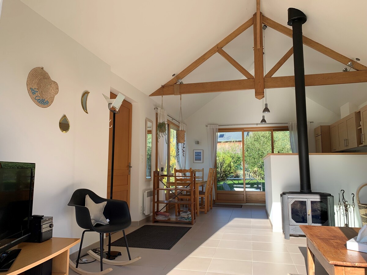 I en liten landsby i Lancieux, som tilbyr alle gledene ved sjøen og på landet, vil du bo i en komfortabel og veldig lys hytte. Din feriebolig i ett plan inkluderer: stue med vedovn, 1 pent soverom (1 seng 160x200), tilstøtende bad (svært romslig dusj) og wc. Gårdsplass med terrasse og parkering foran huset. Inngjerdet hage med terrasse på 160 m² på baksiden. Pakke med 8 euro for 10 kubber som betales på stedet.