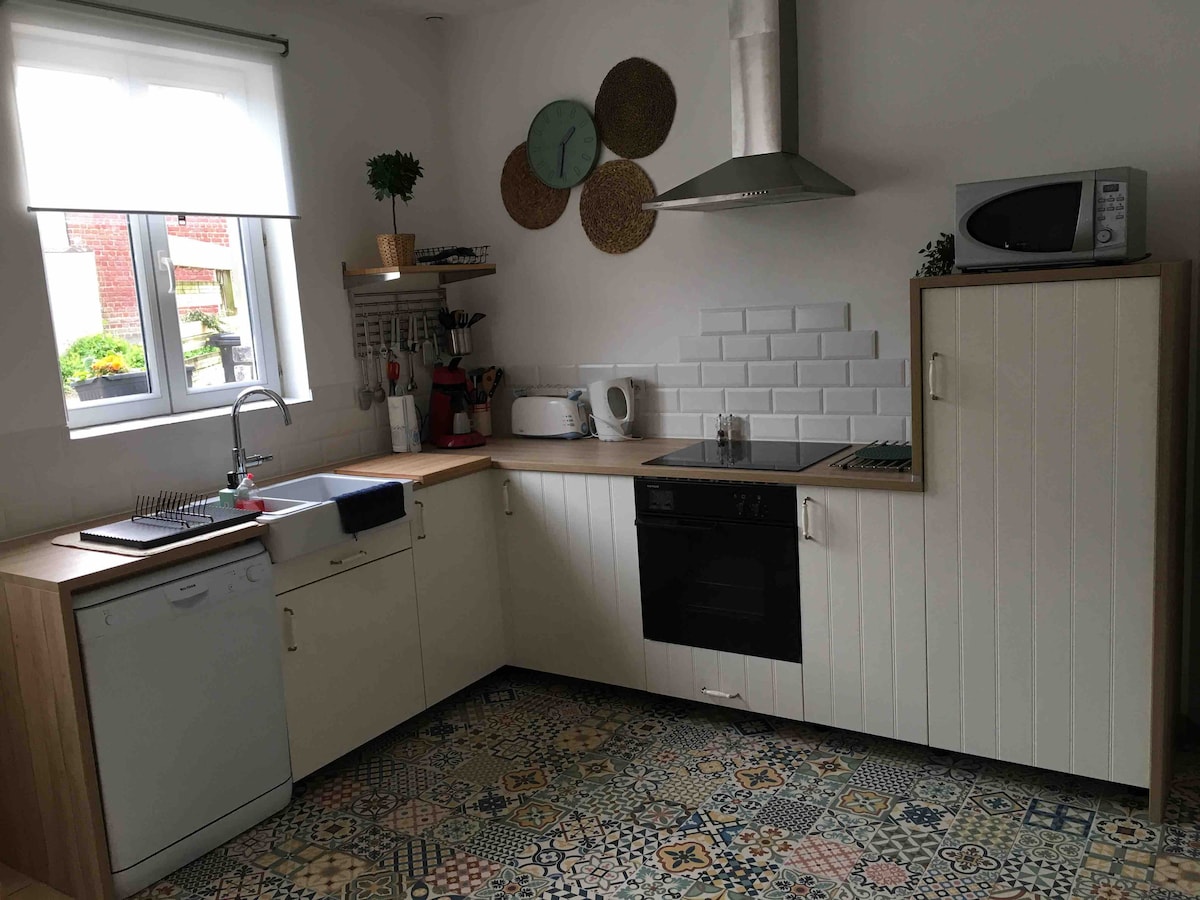 Landsted i kommunen Guemps, ikke langt fra Calais. 🌸 I andre etasje: 2 soverom med senger for 2 personer, et bad og en mesanin. Første etasje: spisestue, stue og åpent kjøkken. Hage med terrasse. Og en privat parkeringsplass. ✨ 👉 Boligen ligger 800 m fra motorvei A16 i retning Calais/Dunkirk. 👉 40 minutter fra Belgia. 10 til 15 minutter fra de vakre strendene våre. 👉 30 minutter fra Boulogne sur mer (Nausicaa) og Opal-kysten. 👉 10 minutter fra Eurotunnel 👉🏻 10 minutter fra Ardres-sjøen