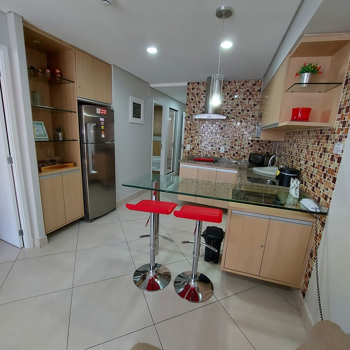 Leiligheten med ett soverom (44kvm) er en suite, designet for å tilby komfort og velvære til gjestene våre. 😊❤️ Landscape Condominium ligger i Beira Mar, noen få meter fra den berømte Ferinha, og har et super fritidsområde: ✅ Basseng for voksne og barn (i to etasjer) ✅ Treningsrom med personlig ✅ Minimarked døgnet rundt ✅ Arkaderom ✅ Badstue. Masseur ✅ Room: ✅ Squashbane - ✅ Lekeplass. ✅ Espaço-barn (i bassengområdet) ✅ Kjæledyrsted ✅ Restauranten er åpen for publikum ✅ Heis