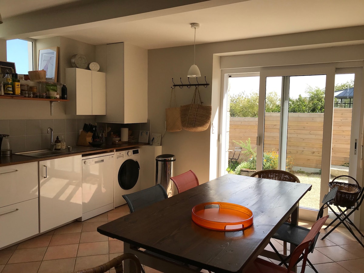 Nord-Finistère, Kersaint-Landunvez, 5 minutters gange fra stranden og GR34. Nylig renovert med svært god kvalitet dette vakre huset som består av et kjøkken, en stor stue, to soverom (et av dem med havutsikt), en mesanin, et bad og toalett. Alt på en tomt på 500m². Wi-Fi, TV, hagemøbler og grill tilgjengelig. Strømkostnader etter faktisk forbruk.