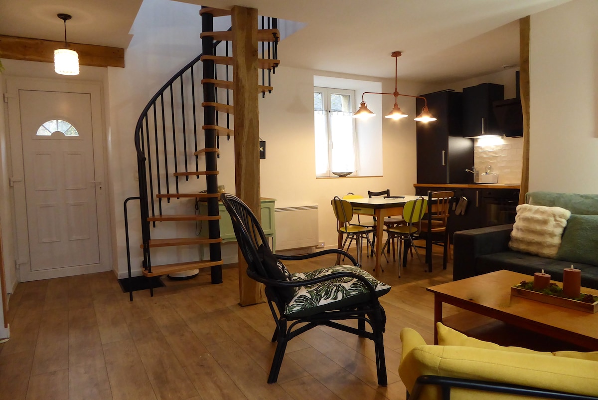 Denne gamle gården fra 1700-tallet, nær den rosa granittkysten, huser forskjellige overnattingssteder, som ligger i en naturlig setting. Vi inviterer deg til å bli med i en myk kokong, l'Ile Rouge, et minne om flere ekspedisjoner i dette vakre landet. Denne hyggelige og funksjonelle studioleiligheten (18 m2), som ble renovert i 2024, ligger ved siden av eiernes hus og tilbyr et avslappende opphold i hjertet av den vakre landsbygda.