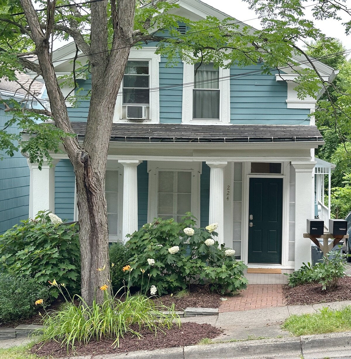 Denne koselige, oppdaterte leiligheten med to soverom blander moderne og vintage møbler fra midten av århundret med en organisk, upstate NY stemning. Den stilige leiligheten i første etasje i et klassisk Ithaca-hjem, ligger i det svært gangbare Fall Creek-nabolaget. Bare noen få kvartaler fra Ithaca Falls, med enkel tilgang til Cornell, Ithaca College og sentrum. Vi tok inspirasjon fra boutiquehoteller da vi designet dette stedet, med nylig renovert bad og kjøkken, nye apparater, smart-TV og luksuriøst sengetøy.