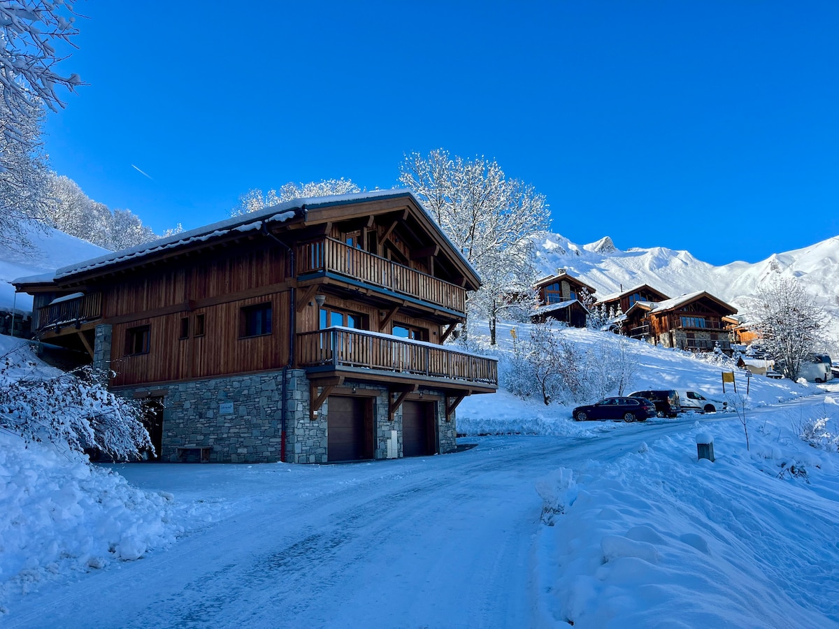 Chalet Swen serrechevalierholidays, luksus, 300 m2, 18 personer (5 familier), SPA + utendørsbasseng oppvarmet om sommeren. Stue på 100 kvm, stor terrasse på 250 kvm + hage på samme nivå som stuen, noe som gjør det til en unik hytte i dalen, eksepsjonell utsikt mot sørvendt isbre. Total ro, sauna, jacuzzi, bordtennisbord, spisebord 3,2 m x 1,1 m. Fem dobbeltsoverom med 180 cm kingsize-senger + privat bad/toalett. Sovesal - 35 kvm filmrom for 8 med to bad.