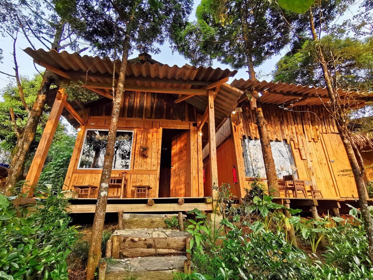 Opplev den sanne ånden i Sapa, bare ti km fra sentrum – fredelig og omgitt av fjell. * Separat trehytte for opptil tre gjester. * Store glassvinduer med utsikt over fjell og risterrassen * fullt utstyrt kjøkken (kjøleskap og kjøkkenutstyr) * Peis, varmeapparat og oppvarmet madrass (koselig om vinteren). * Romslig, moderne bad med varmt vann og oppvarming. * Utendørs hage med panoramautsikt.