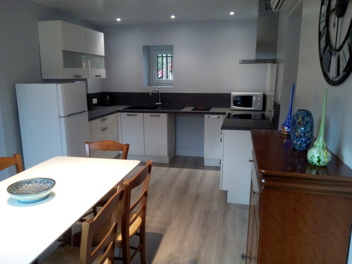 I et rolig nabolag, leilighet med 1 sover med seng 140 og 1 rom med 1 seng 140 og 1 seng 90, kjøkken, bad og separat toalett, overbygd terrasse. 400 m til landsby, restaurant, bakeri med dagligvarebutikk, supermarked 15 km. Ligger 15 km fra St Jean Pied de Port og St Palais. Ideelt for å besøke det indre Baskerland: dalene Baigorry og Aldudes, Iraty skogen, Soule, Kakoueta juvet, grensen og Ventas (24 km), Baskerlandskysten (1 t) og Landaise (1 t 15 min).