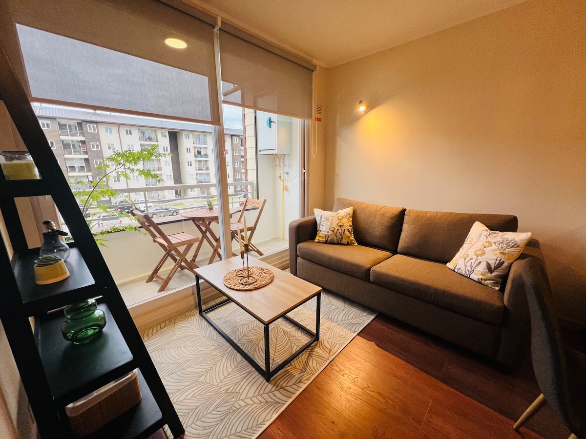 Acogedor departamento en Jardin Urbano Acceso por cerradura con contraseña Capacidad para 5 personas Condominio cerrado, seguridad 24/7 3 habitaciones, 3 camas 2 baños, escritorio, cocina completa WiFi fibra optica Aire acondicionado Calefactores en cada habitación Terraza con vistas al jardín Mascotas bienvenidas Incluye toallas y sábanas limpias Televisión 4K Huéspedes sin reseñas deben enviar foto de su documento de identidad. Estacionamiento para 1 vehículo NO tenemos estacionamiento extra