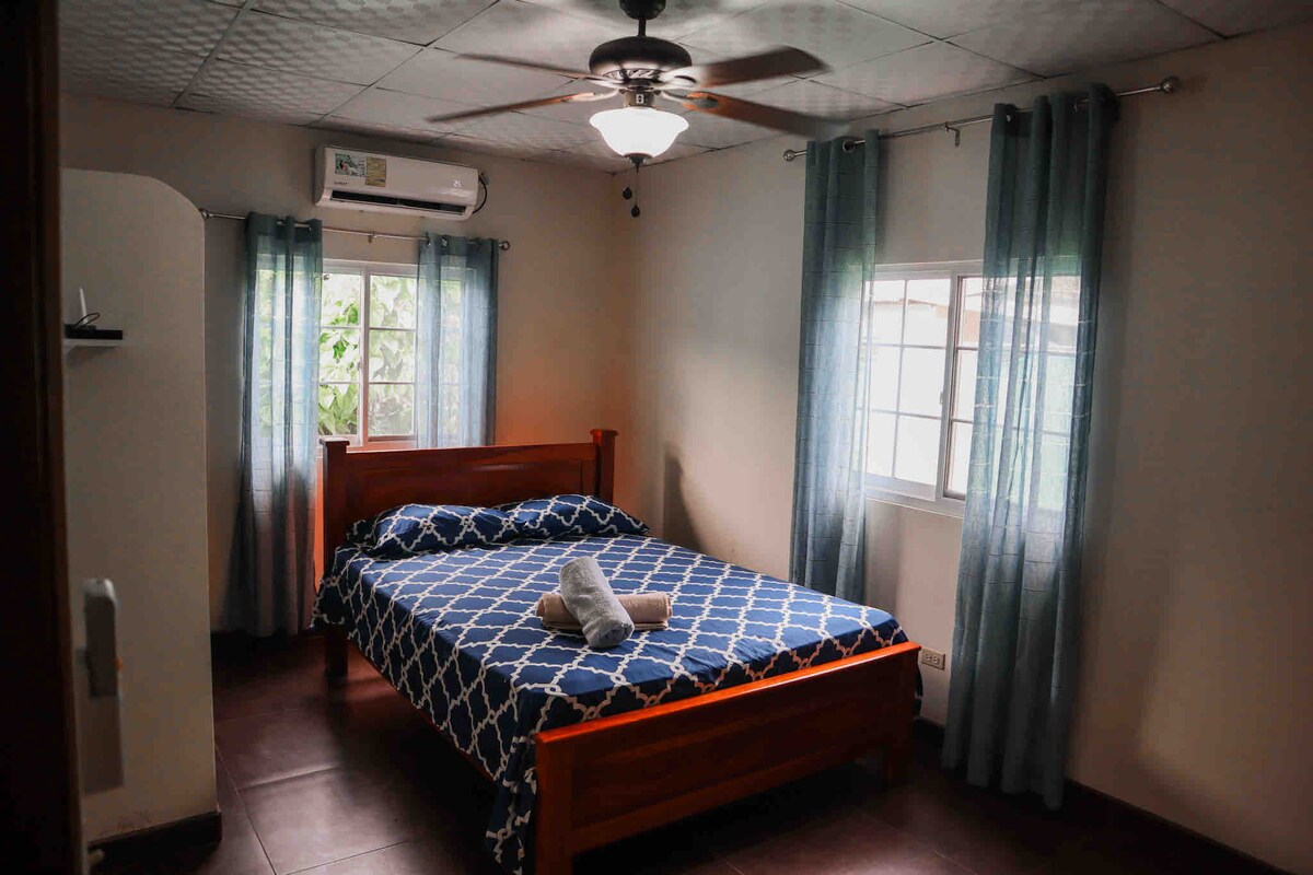 Unikt hus i Los Santos! Dette hjemmet er et 60 år gammelt panamansk trehus som har blitt renovert, samtidig som det har blitt renovert. To soverom (hovedsoverom med king size-seng, andre soverom med enkeltseng), ett bad, fullt utstyrt kjøkken med romslig stue og spisestue. Ett lukket og sikkert kontor med klimaanlegg med alt av utstyr som trengs (kontorstol, skjerm, tastaturlås...) kun på kontoret, resten av huset med vifter! Katten vår Papaya bor i huset!