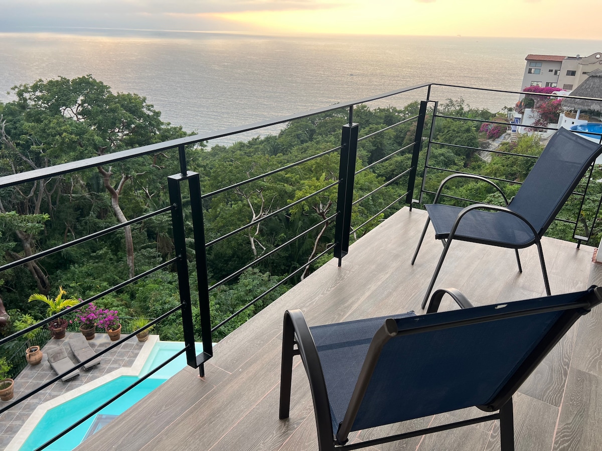 Ditt eget PRIVATE BASSENG med en fantastisk panoramautsikt over havet. Denne supersøte og komfortable loftsleiligheten har den mest SPEKTAKULÆRE UTSIKTEN MOT HAVET i hele Puerto Vallarta, for å nyte uforglemmelige SOLNEDGANGER og fyrverkeri hver kveld. Det er virkelig ikke noe som dette stedet i byen, det er et helt unikt og sjarmerende loft å bo på, fullt utstyrt med alle bekvemmeligheter og trinn unna restauranter, kunstgallerier, byattraksjoner og mer. En unik flukt for en romantisk ferie, eller bare for å unne deg noe spesielt.