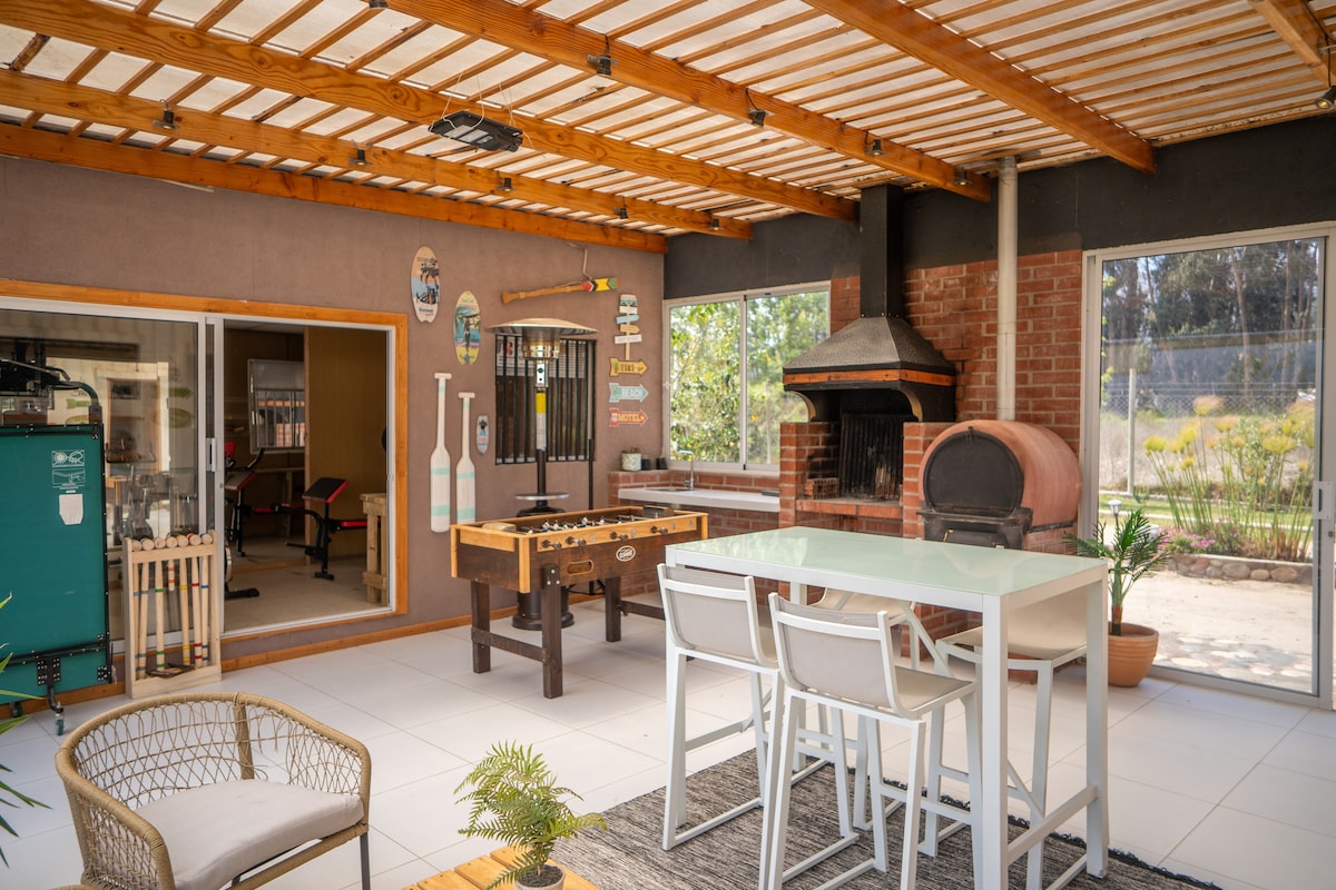 Relaxation spot where the sun will shine from the morning. It's prepared for a group of 12 to 14 people, fully equipped, with beautiful and spacious green areas, a large pool, gym, barbecue area, and clay oven, ping pong table, football, wooden hot tub with firewood heating, 5 bedrooms, 4 bathrooms, Wi-Fi, beautiful and cozy spaces, ideal for families to come and relax and recharge in the Valle del Elqui. Located towards Vicuña, 15 minutes from downtown La Serena.