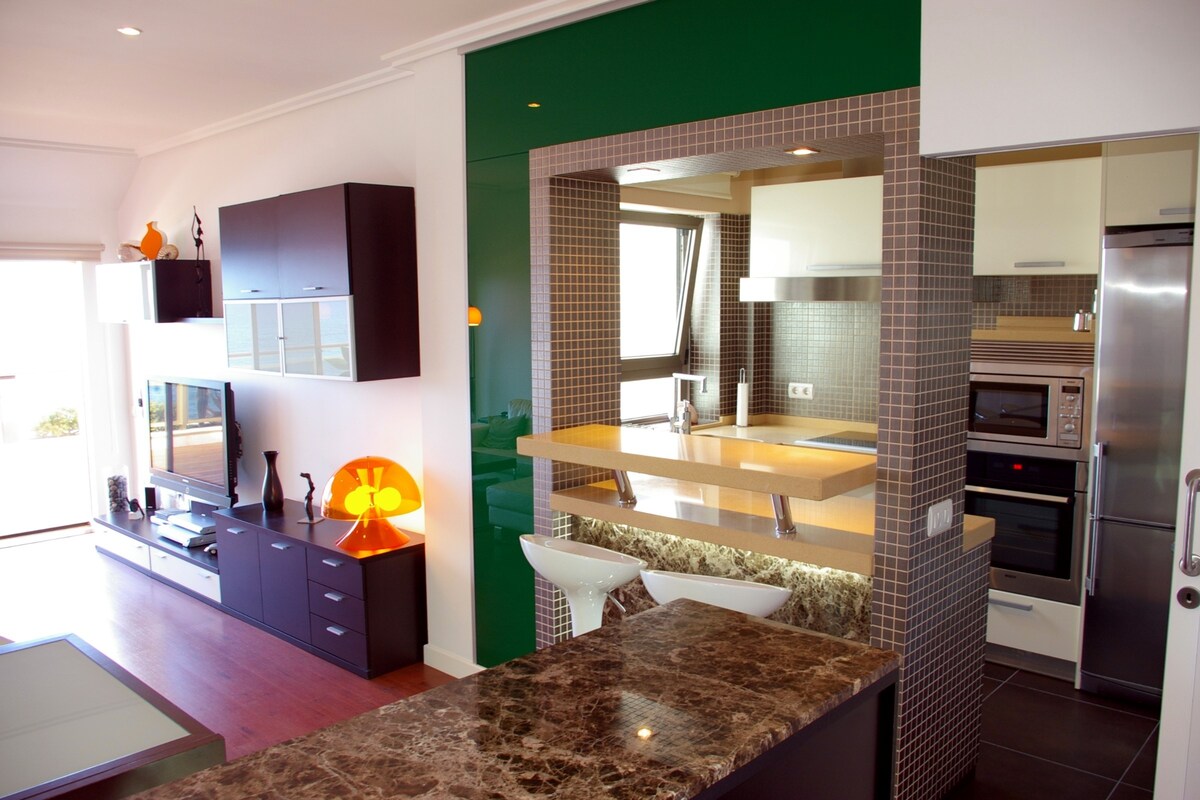 Tenk deg å spise frokost med lyden av bølgene og se på havet! Denne nyoppussede leiligheten er et lyst og rolig tilfluktssted designet for å nyte havet fra den private terrassen ved havet. Huset tilbyr et koselig og godt vedlikeholdt sted, ideelt for par eller reisende som ønsker å koble fra, hvile og oppleve havet på stranden. Terrassen, med et område å spise eller slappe av, blir det perfekte området å spise frokost i solen og se uovertrufne solnedganger.