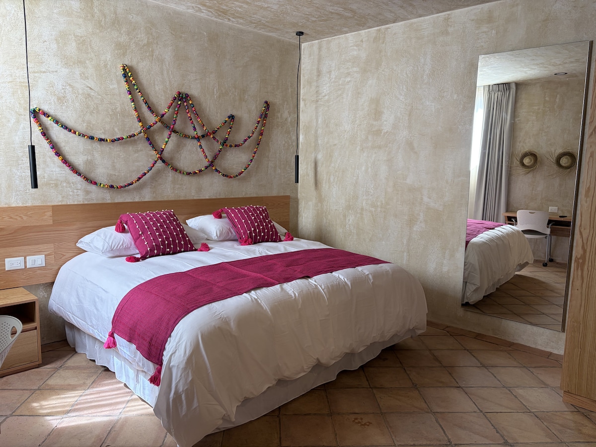 Tenk deg å våkne opp i din egen private casita, 1000 fot over havet, bare dere to. Morgener starter sakte, kaffe i hånden på terrassen din, med 180 graders panoramautsikt over havet, himmelen og majestetiske fjell i Dominical. Etter å ha utforsket nærliggende fossefall eller slappet av ved det delte bassenget, kan du friske deg opp med en luksuriøs regndusj mens partneren din tilbereder middag med ferske, lokale ingredienser på det komplette kjøkkenet. Sømløst innendørs/utendørs liv i Costa Rica … oppslukende, naturlig og bare ditt!