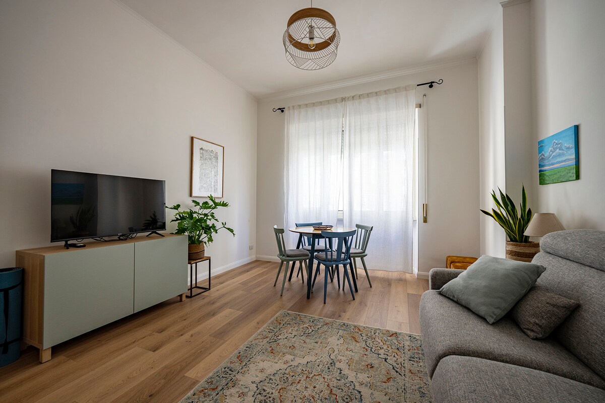 Nydelig leilighet på Piazza San Giovanni, i Roma sentrum. Det er mulig å nå historiske steder og monumenter som Colosseum, Fori Imperiali, Piazza Venezia på 10–15 minutter. Huset ligger i andre etasje i en elegant og moderne bygning. Huset består av stue med kjøkkenområde, sovesofa, soverom, bad med stor dusj og en vakker terrasse. Miljøet er preget av eleganse, oppmerksomhet på detaljer og moderne/vintage funksjonell stil.
