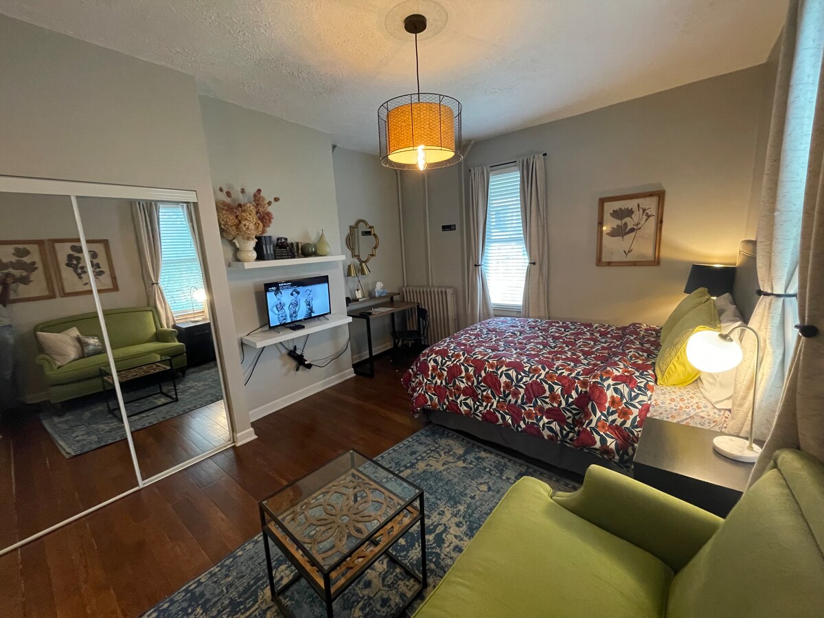 Koselig ettromsleilighet i Mt. Lebanon, fullt utstyrt kjøkken, stue/spisestue, separat soverom og bad. Soverommet har en kingsize-seng, og sofaen er en stor CB2-seksjon. Keurig kaffemaskin med k-kopper. 1 bil utenfor gateparkering. Smart-TV med Netflix og Amazon, også grunnleggende kabelkanaler. Gjestene våre elsker det! Vær oppmerksom på at det er 13 trinn til leiligheten – 8 betongtrinn og 5 tremøblerte trinn.